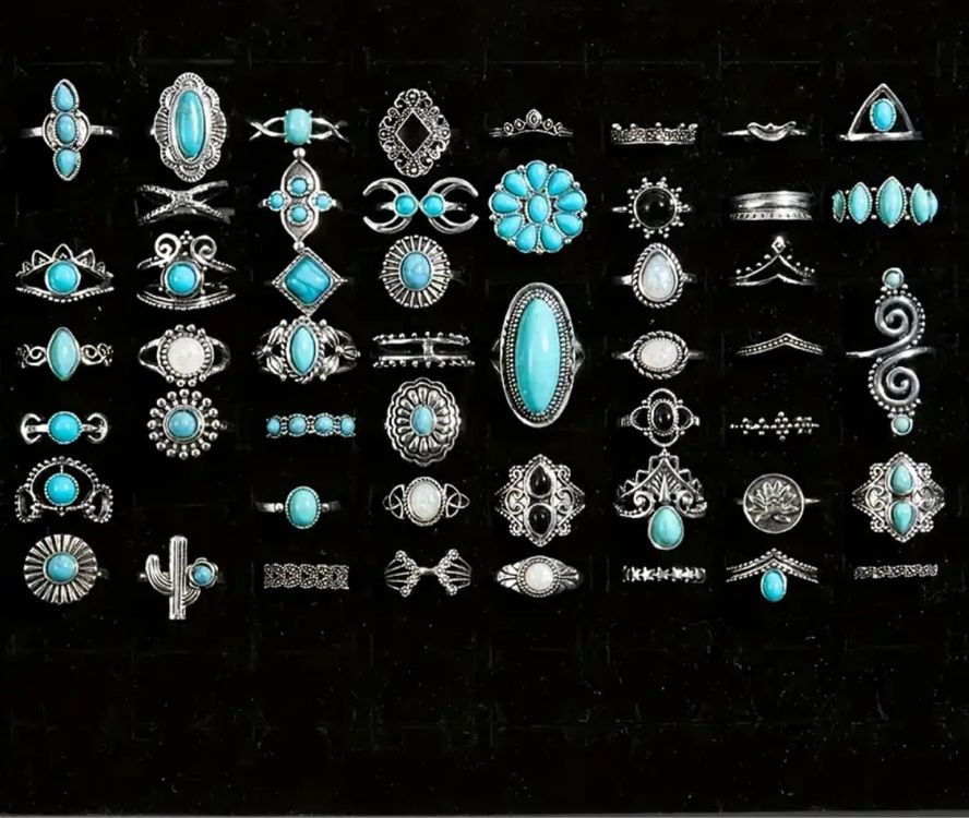 Wunderschönes 6-teiliges Ring-Set im Boho-Vintage-Stil! Jeder Ring mit authentischen Türkis-Steinen in verschiedenen Designs. Aus hochwertiger Legierung gefertigt - langlebig und anlaufgeschützt. Perfekt zum Stapeln und Kombinieren für individuelle Looks. Die Ringe passen sich bequem dem Finger an. Ideal für den täglichen Gebrauch oder besondere Anlässe. Ein tolles Geschenk für Geburtstage, Feiertage oder einfach als Zeichen der Wertschätzung. Verleihe deinem Style einen Hauch von Western-Eleganz!