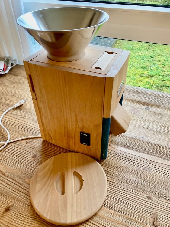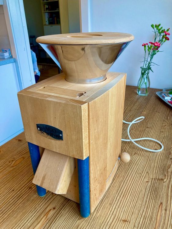 Frisch gemahlenes Mehl und Flocken in einem Gerät! Die Schnitzer VARIO ist die perfekte Kombimühle für gesunde Ernährung. Mit kräftigem 360W Industriemotor und keramischen Korund-Mahlsteinen (90mm Durchmesser). Mahlt 110g/min fein oder 300g/min grob - alles ohne Hitzeentwicklung für volle Nährstoffe! Einfach den Metalltrichter drehen und du wechselst zwischen Mahlen und Flocken. Der Trichter fasst 1000g Getreide und ist abnehmbar zum Wiegen. Aus Buchen-Vollholz, 14kg schwer, 43cm hoch - ein echter Hingucker in jeder Küche! Leise im Betrieb (72db mahlen, 40db flocken) und für Mais geeignet. Mit Getreide-Stopp-Funktion für portioniertes Mahlen. Hol dir jetzt die Freiheit, dein Mehl selbst frisch zu mahlen - für Brot, Müsli und mehr! Deutsche Qualität seit Jahrzehnten.