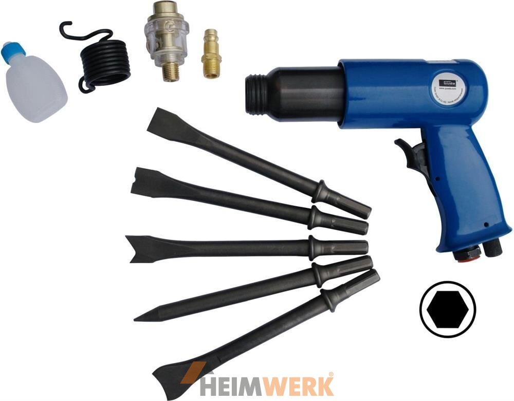 Power pur für deine Werkstatt! Der VEVOR Druckluft Meißelhammer bringt es auf stolze 4500 Schläge pro Minute - da macht keine Aufgabe mehr Spaß. Mit 90 PSI Luftdruck und 11,5 CFM Verbrauch ist dieses Teil ein echter Arbeiter. Im Lieferumfang: 4 verschiedene Meißel (120mm lang), Nadelentroster für Rost, Luftdüsenanschlüsse und Werkzeug. Der ergonomische Pistolengriff liegt perfekt in der Hand und rutscht nicht. Ideal für Baustellen, Werkstätten oder industrielle Anwendungen. Ob Metall schneiden, Beton aufbrechen oder Schrauben entfernen - dieser Hammer meistert alles. Das Aluminium-Gehäuse ist stoßfest und korrosionsbeständig. Leicht und kompakt, aber voller Power. Hol dir diesen Profi-Hammer und mach schwere Arbeiten zum Kinderspiel!