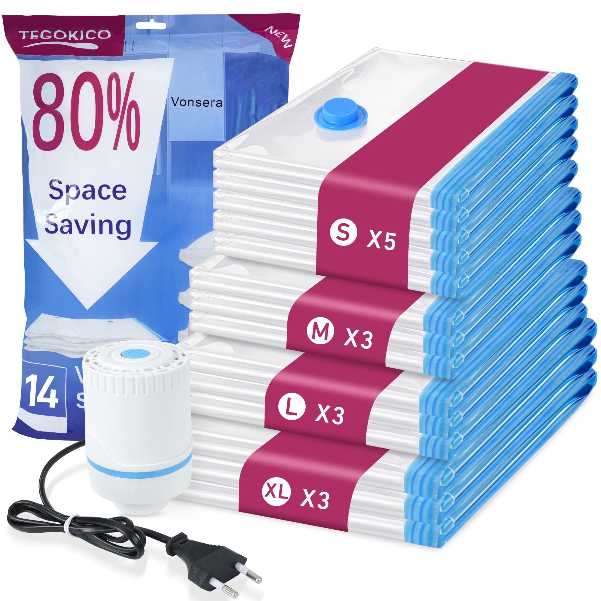 Boah, dieses Vakuumbeutel-Set ist die ultimative Lösung für Stauraum-Probleme! 8 Beutel in 4 verschiedenen Größen: 2x XL (80x100cm), 2x L (60x80cm), 2x M (50x70cm), 2x S (40x60cm) - für alles was du verstauen willst! Mit elektrischer Vakuumpumpe - einfach anschließen und in Sekunden ist die Luft raus! Kein anstrengendes Pumpen mehr - total bequem! Bis zu 80% Platzersparnis - ideal für Kleiderschränke, Reisekoffer oder Lagerräume! Doppelter Reißverschluss und dreifach abgedichtetes Ventil - absolut wasserdicht und staubdicht! Aus reißfestem PA-PE-Material, 90 Mikron stark - hält ewig und ist wiederverwendbar! Transparente Fenster - du siehst sofort was drin ist ohne zu öffnen! Perfekt für Winterkleidung, Bettdecken, Kissen, Handtücher oder Spielzeug! Besonders praktisch bei Umzügen - reduziert die Anzahl der Kartons enorm! Auch für Reisen super - mehr Platz im Koffer für Souvenirs! Einfach zu bedienen: Sachen rein, Reißverschluss zu, Pumpe anschließen, Luft raus - fertig! Schützt vor Motten, Feuchtigkeit und Schimmel - deine Sachen bleiben frisch! Die Pumpe läuft mit Netzstrom - keine Batterien nötig! Einfach bestellen und endlich Ordnung in deinen Stauraum bringen! Besonders für kleine Wohnungen oder Häuser mit begrenztem Stauraum ein absoluter Game-Changer! Macht das Verstauen von saisonalen Sachen zum Kinderspiel!