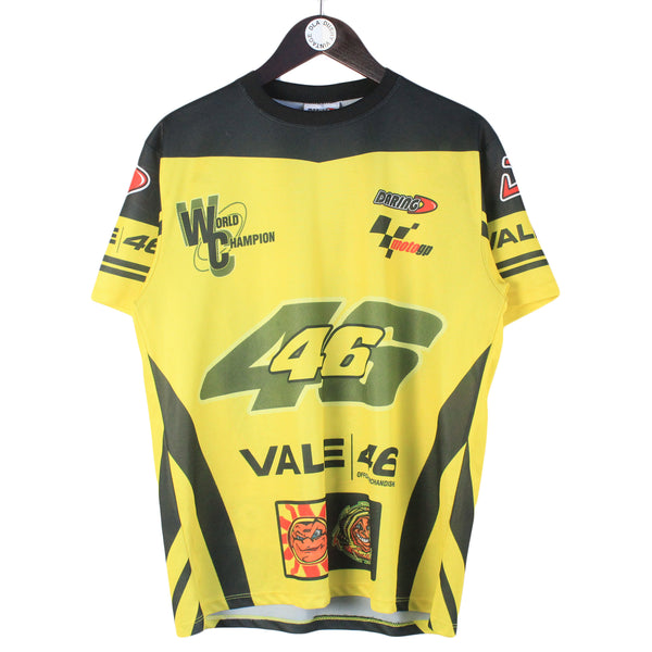 Zeig deine Liebe zum Doctor mit diesem offiziellen Valentino Rossi Heritage Shirt! Aus der VR46 Official Collection 2025 stammend, ist dieses Unisex-Shirt ein Muss für jeden echten Rossi-Fan. Das schwarze Shirt im modernen Schnitt vereint Stil und Komfort perfekt. Ob du es zur nächsten MotoGP-Veranstaltung trägst, beim Motorradfahren oder einfach nur im Alltag - mit diesem Shirt zeigst du, wo deine motorsportliche Loyalität liegt. Die hochwertige Verarbeitung garantiert, dass das Shirt auch nach häufigem Tragen und Waschen form-stabil bleibt und die Farben intensiv bleiben. In Größe XXL für bequemen Sitz und maximierte Bewegungsfreiheit. Ein zeitloses Design, das die Legacy von Valentino Rossi würdig repräsentiert. Hol dir ein Stück Motorsport-Geschichte und unterstütze den legendären Fahrer mit Style!