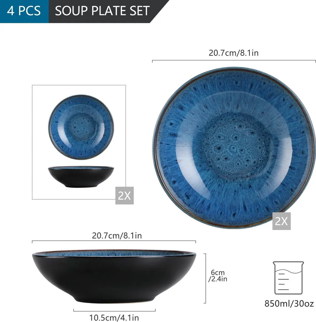 Dieses wunderschöne vancasso BUBBLE Geschirrset bringt richtig viel Stil auf deinen Esstisch! Das 12-teilige Set ist perfekt für 4 Personen und besteht aus robustem Steinzeug. Du bekommst 4 Speiseteller (Ø26,9 cm), 4 Dessertteller (Ø22 cm) und 4 praktische Müslischalen mit 780 ml Fassungsvermögen. Die einzigartige reaktive Glasur sorgt für faszinierende Farbverläufe in Grün - jedes Stück ist ein Unikat! Das Beste: Das Geschirr ist spülmaschinenfest, mikrowellengeeignet und kühlschrankfest. Die glatte Oberfläche verhindert das Anhaften von Speisen und ist super leicht zu reinigen. Ohne Blei und Cadmium gefertigt, ist es eine gesunde Alternative zu Plastikgeschirr. Perfekt für den täglichen Gebrauch oder besondere Anlässe - dieses Set macht jede Mahlzeit zu einem besonderen Erlebnis!