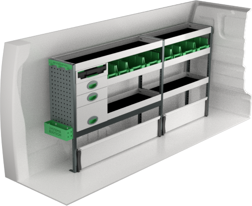 Endlich Ordnung im Arbeitswagen! Dieses Vanify Regalsystem ist speziell für den Citroen Jumpy L2 und L3 ab Baujahr 2016 entwickelt. Nie wieder Chaos im Kofferraum - mit den praktischen Fächern findest du dein Werkzeug sofort.