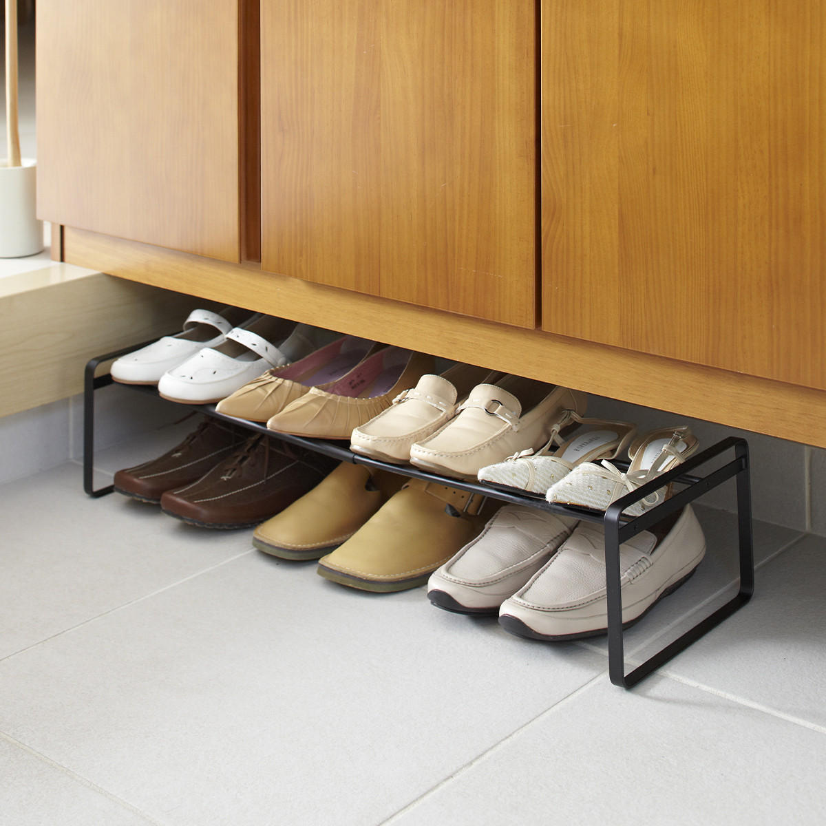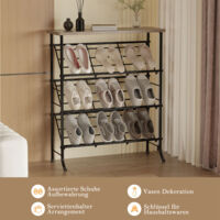 Schluss mit Schuhchaos! Dieses schmale 3-stufige Regal von Vasmeiy bringt Ordnung in deinen Flur. Aus rostfreien Metallrohren und robusten Kunststoffverbindern - hält ewig und sieht dabei noch gut aus! Bis zu 6 Paar Schuhe finden hier Platz, ohne viel Raum wegzunehmen. Super für enge Flure, Kleiderschränke oder die Garage. Das Beste: Montage komplett ohne Werkzeug! Einfach die Metallrohre in die Plastikverbinder stecken - fertig in wenigen Minuten. Und das Regal ist nicht nur für Schuhe gut: Handtaschen, Bücher, sogar kleine Pflanzen finden hier Platz. Die glatte Oberfläche lässt sich easy mit einem feuchten Tuch reinigen. Jede Ebene ist verstärkt und trägt auch schwere Stiefel problemlos. Das schwarze Design passt zu jedem Einrichtungsstil - ob modern oder klassisch. Und falls du mal mehr Platz brauchst: Die Regale sind stapelbar! Einfach ein zweites oben drauf setzen. Perfekt für Familien, WG-Bewohner oder alle, die einfach mehr Ordnung brauchen. Mach deinen Eingangsbereich endlich aufgeräumt und begrüß deine Gäste ohne verstreute Schuhe! Übrigens: Die Anti-Rost-Beschichtung sorgt dafür, dass das Regal auch in feuchten Räumen wie Badezimmern haltbar bleibt.