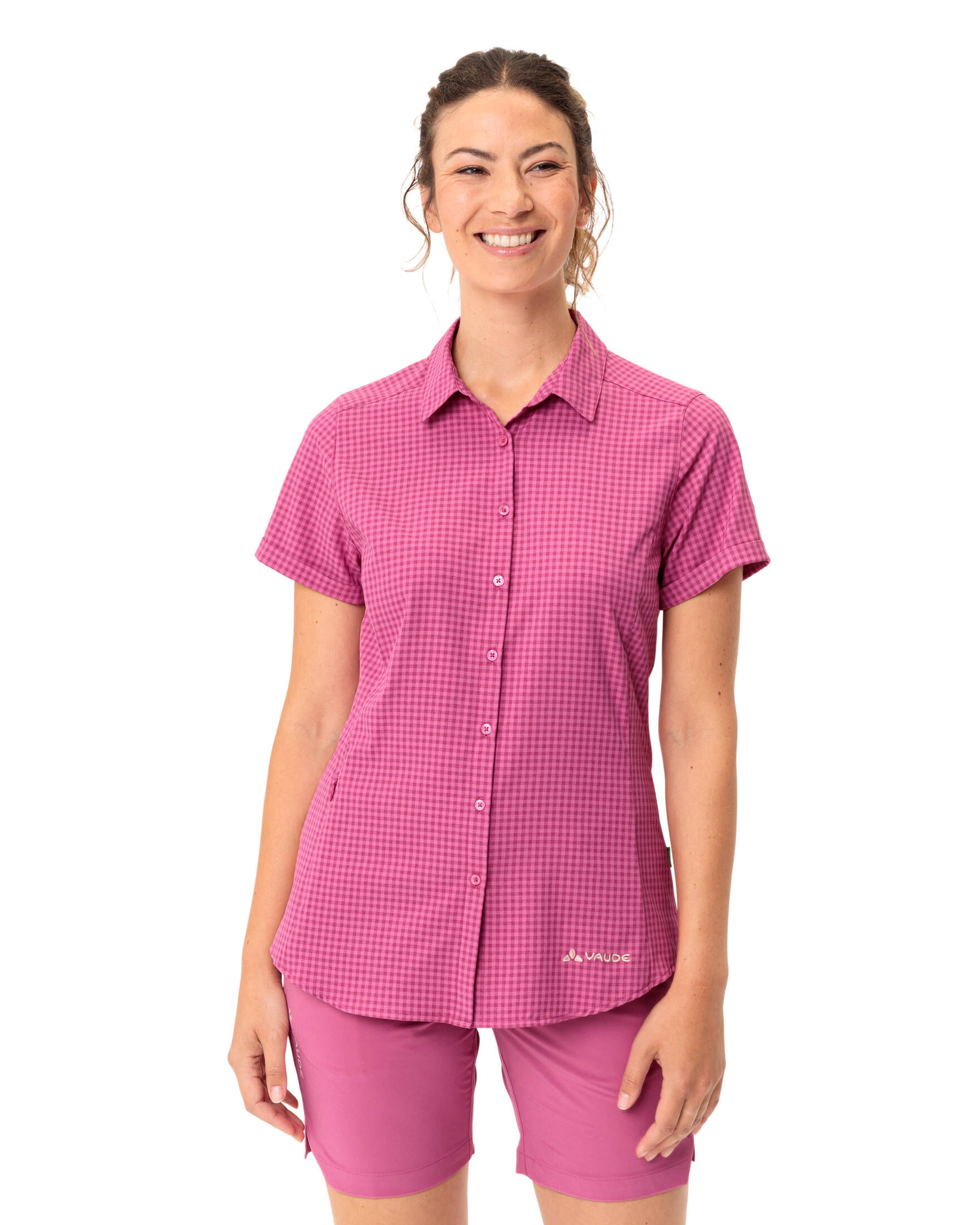 Dein neuer Liebling für Wanderungen und Trekkingtouren! Das Vaude Seiland Hemd für Damen überzeugt nicht nur durch sein klassisches Karo-Design, sondern auch durch seine nachhaltige Produktion. Komplett aus recyceltem Polyester gefertigt, ist es ein echter Beitrag zum Umweltschutz.\n\nDas äußerst elastische Material gibt dir maximale Bewegungsfreiheit - egal ob du steile Anstiege meisterst oder gemütliche Spaziergänge unternimmst. Pflegeleicht und schnelltrocknend kannst du es bei Bedarf auch mal schnell unterwegs waschen. Das taillierte Schnittmodell sorgt für eine perfekte Passform und einen femininen Look.\n\nEin besonderes Highlight ist die versteckte Reißverschluss-Tasche in der Seitennaht - ideal für wichtige Kleinigkeiten wie Geld oder Schlüssel. Mit dem VAUDE Green Shape-Label garantieren wir dir ein umweltfreundliches Produkt aus nachhaltigen und bluesign® zertifizierten Materialien. So macht Wandern nicht nur Spaß, sondern du tust auch noch etwas Gutes für unseren Planeten. Perfekt für alle, die Style und Nachhaltigkeit kombinieren wollen!