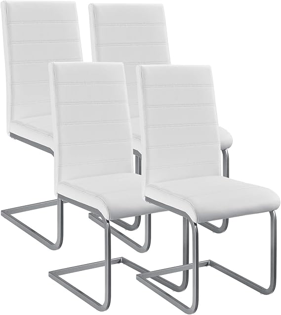 Wow, diese Freischwinger-Stühle bringen richtig Style in deine Wohnung! Im 2er-Set in Grau-Weiß - passt zu fast jedem Einrichtungsstil. Mit 98,5 x 49 x 39,5 cm Maßen sind sie bequem aber platzsparend. Das Gestell aus galvanisiertem Edelstahl ist super stabil und die dicken Stahlstangen verhindern Bruch und Verformung. Die Sitzfläche ist aus importiertem PU-Leder mit dickem Neutralschaum - super bequem und langlebig. Ergonomisch geformt entlastet die Rückenlehne die Wirbelsäule. Die glatten Kurven sehen nicht nur gut aus, sie sind auch mega gemütlich. Perfekt für Esszimmer, Küche oder sogar Büro. Achtung: Die Stühle kommen zerlegt und müssen selbst montiert werden - aber keine Sorge, es geht easy! Dekorationen sind nicht im Lieferumfang. Mach deine Wohnung zum Hingucker mit diesen stylischen Freischwingern!