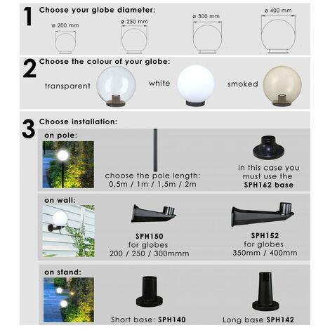 • Velamp APOLUX Außenkugel 200mm - PMMA Kugel Mit E27 Fassung, Getönt, IP44