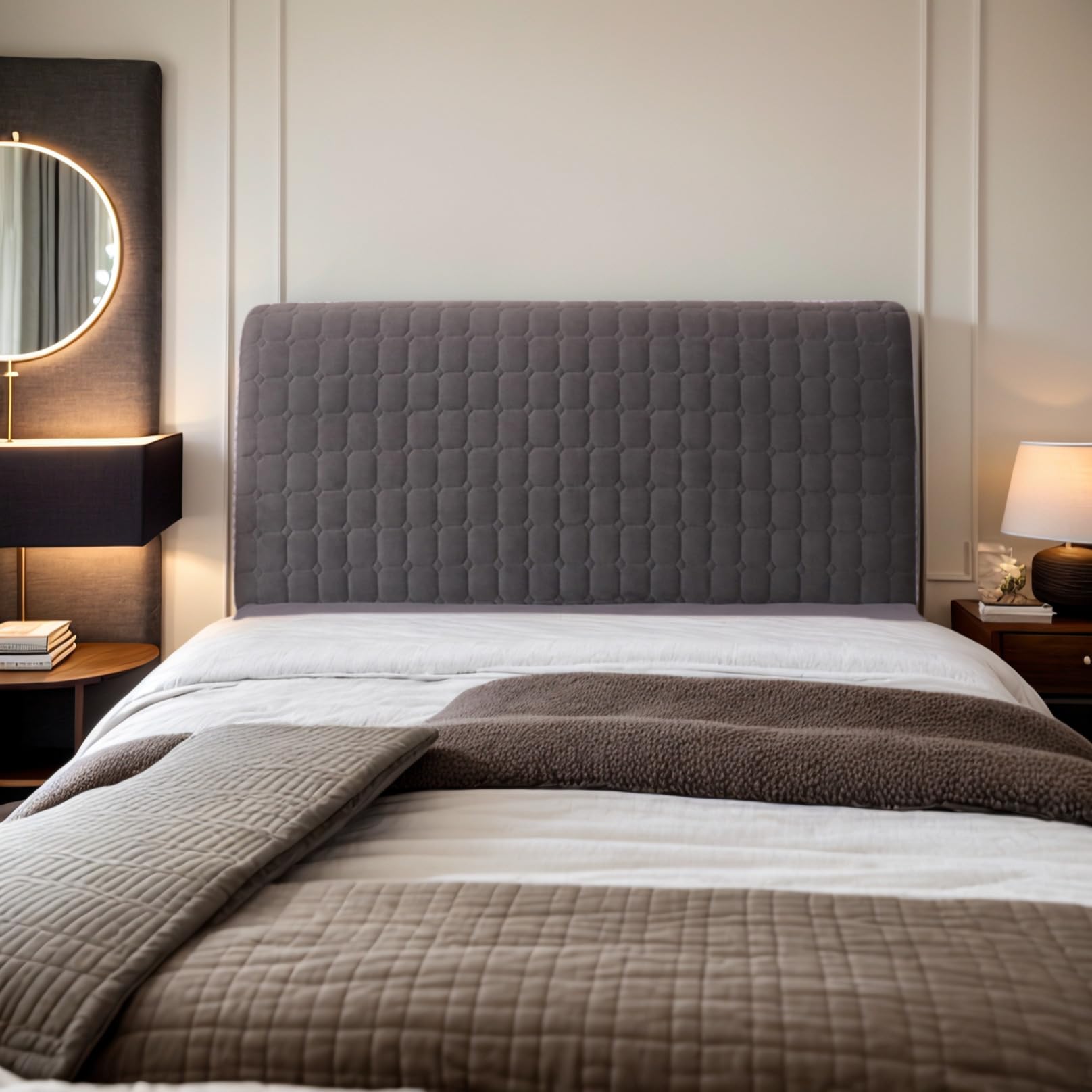 Moin! Dein Kopfteil sieht nicht mehr so frisch aus oder du willst einfach mal was Neues? Diese superweiche Velours-Abdeckung von DOSYCOVUR ist die perfekte Lösung! Sie passt sich wie eine zweite Haut an dein Kopfteil an und macht aus jedem alten Bett sofort einen Hingucker. Besonders praktisch: Sie ist waschbar! Einfach abziehen, in die Maschine stecken und schon ist sie wieder wie neu. Die Abdeckung gibt's in verschiedenen Längen von 150 cm bis 220 cm und passt damit an die meisten Doppelbetten und King-Size Betten. Das dehnbare Material umschließt Kopfteile mit einer Dicke von 3-35 cm - also wirklich fast alles, was du zu Hause hast. Ob Holz-, Leder- oder Stoffbett - diese Hülle verwandelt dein Schlafzimmer im Handumdrehen. Und keine Sorge vor Staub oder Verschmutzungen - die Abdeckung schützt dein Kopfteil zuverlässig. Einfach überziehen, glatt streichen und schon sieht dein Bett aus wie neu! Total praktisch, wenn du mal schnell das komplette Erscheinungsbild deines Schlafzimmers ändern willst, ohne gleich ein neues Bett kaufen zu müssen.