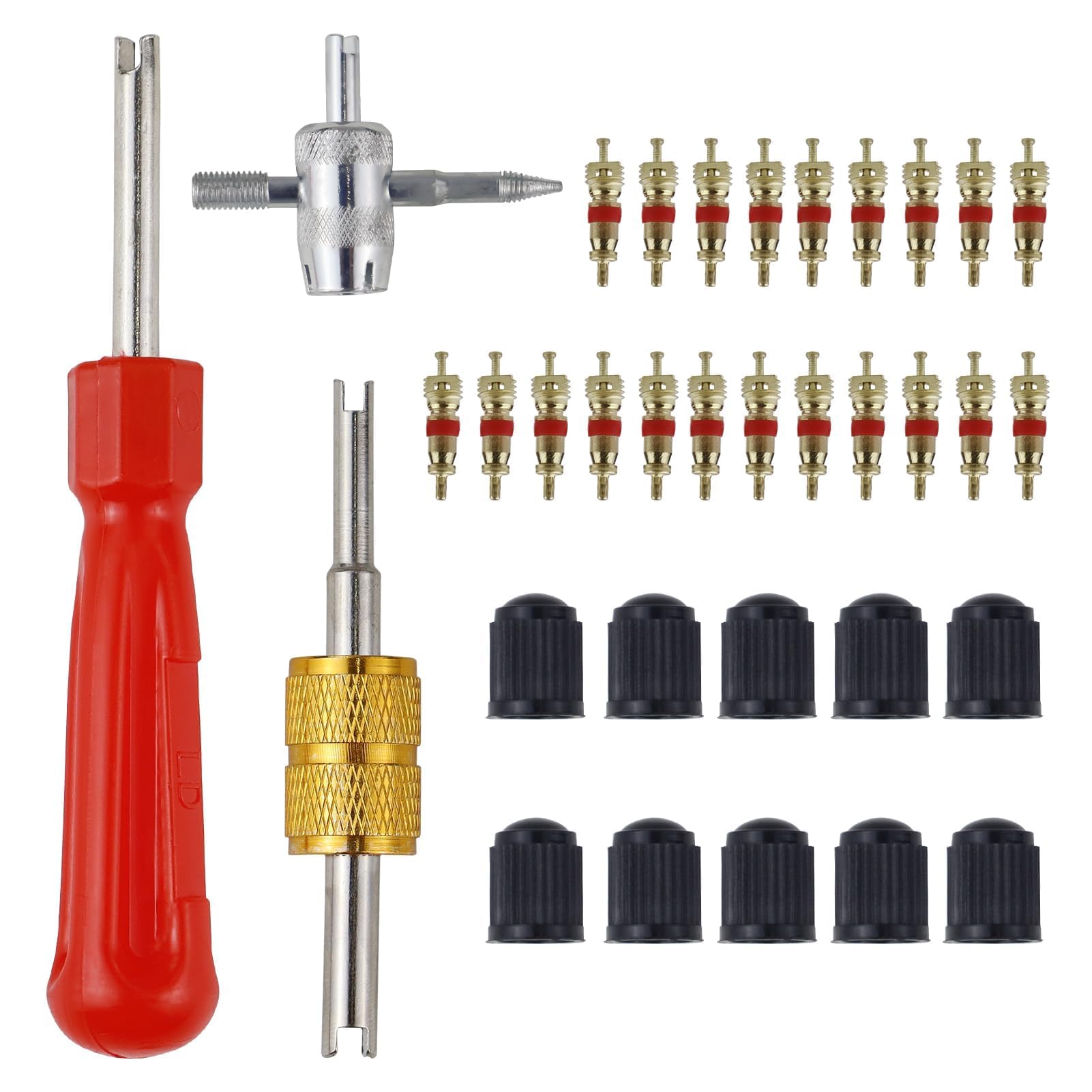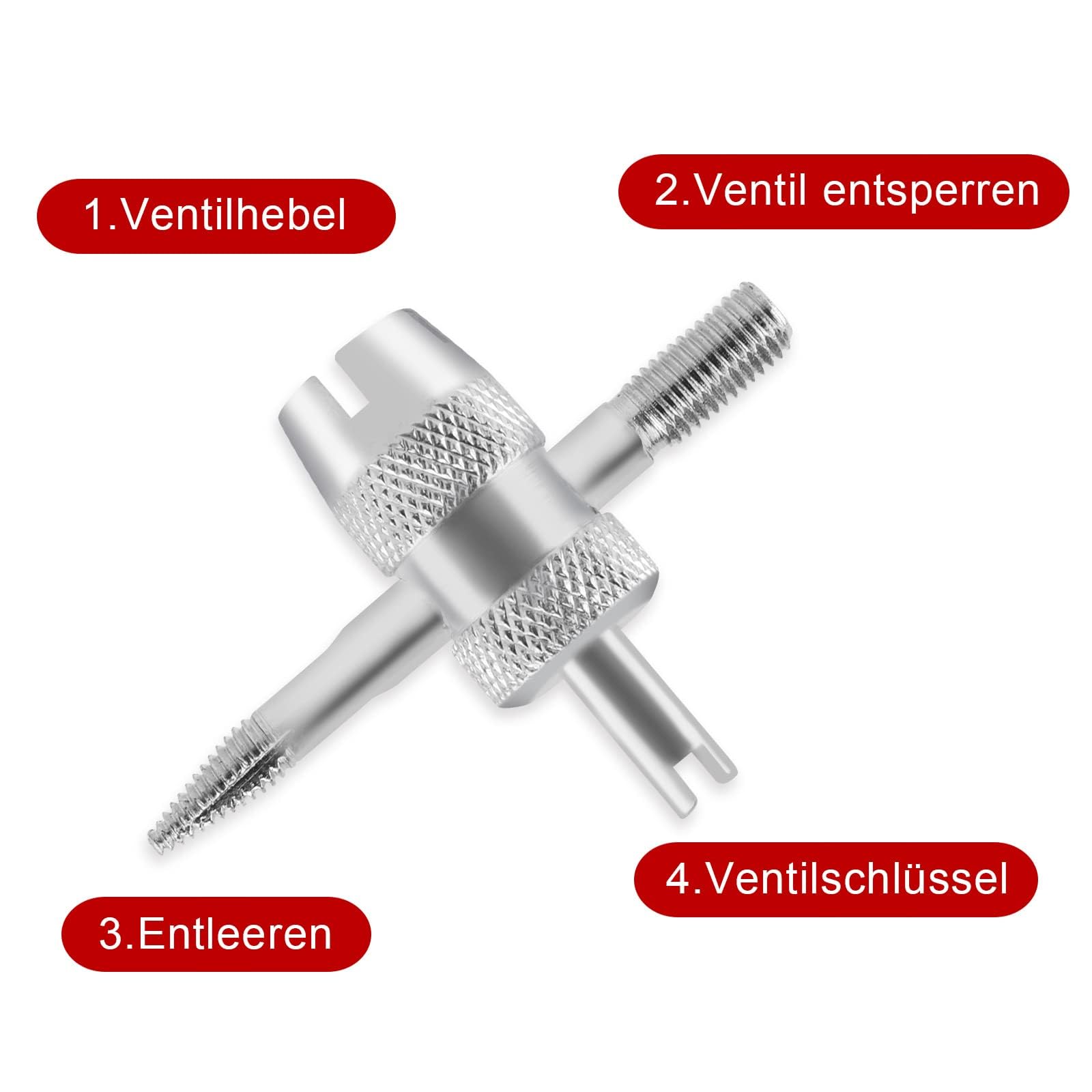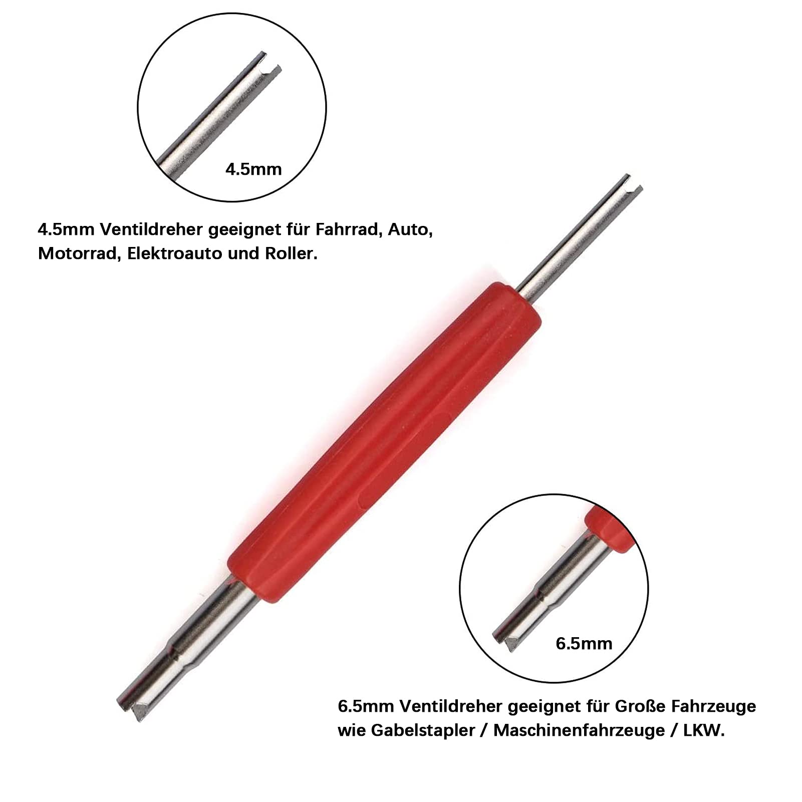 Perfektes Set für alle Ventil-Reparaturen! 46 Teile in einer praktischen Box: Einzelkopf-Ventilentferner, Doppelkopf-Werkzeug, 4-Wege-Ventilwerkzeug, 12 Ventilkappen (schwarze Gummi, schwarze Metall, weiße Metall) und 30 Ventilkerne. Alles aus hochwertigem vernickeltem Kupfer - rostfrei und langlebig! Die Werkzeuge haben ergonomische Griffe die nicht rutschen. Super für Auto, LKW, Motorrad, Fahrrad, ATV - einfach für alles mit Reifen! Kompakt und leicht - passt in jede Werkzeugtasche. Einfach den alten Ventilkern rausdrehen, neuen rein - schon ist die Reparatur erledigt! Spart Zeit und Geld für die Werkstatt. Ideal für unterwegs oder in der heimischen Garage. Ein Must-Have für jeden der sein Fahrzeug selbst wartet!