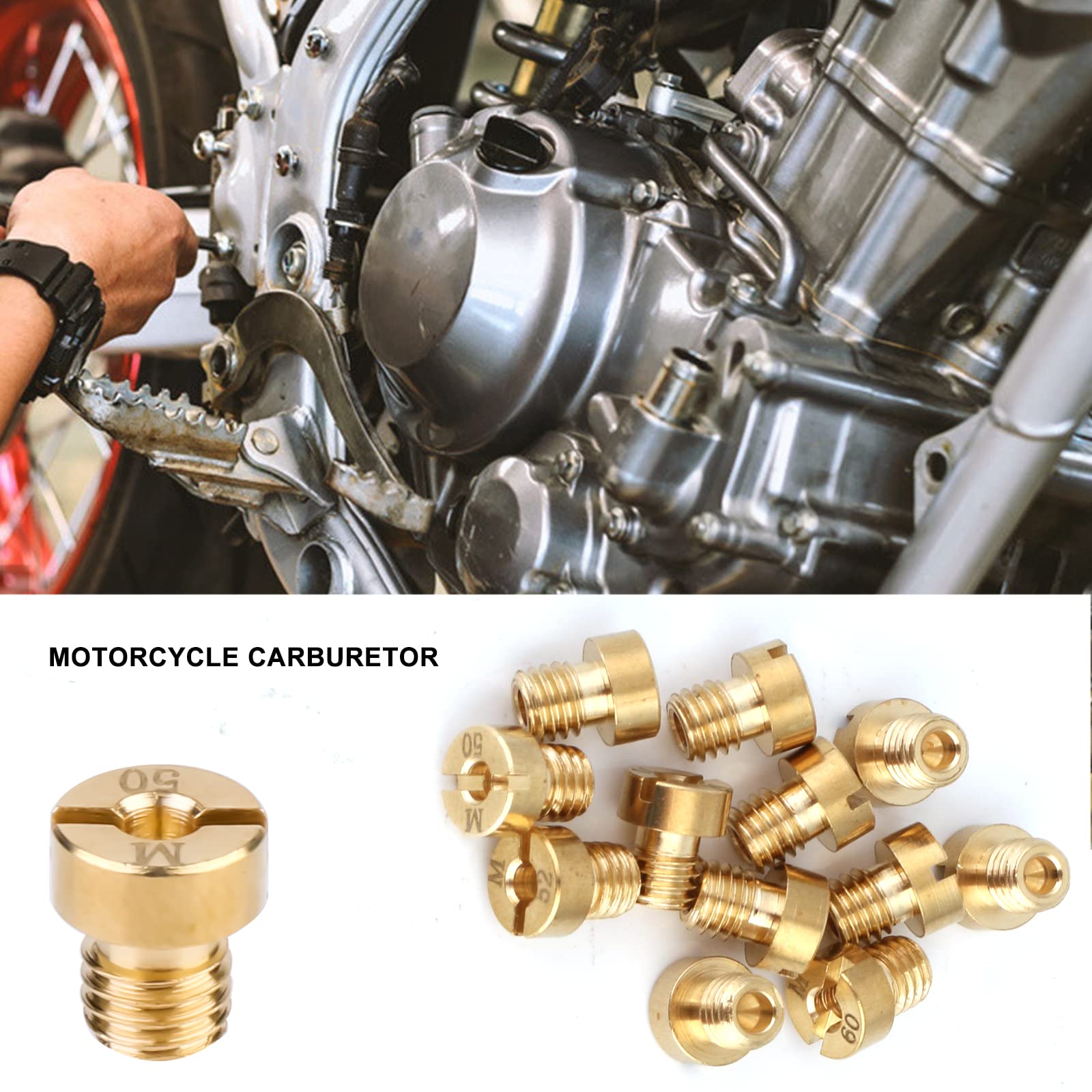 Hey, wenn du deinen Roller oder dein Motorrad perfekt einstellen willst, ist dieses 10-teilige Vergaser-Düsenset genau das Richtige für dich! Enthalten sind alle gängigen Größen von 75 bis 98 - also 75, 78, 80, 82, 85, 88, 90, 92, 95 und 98. Hergestellt aus hochwertigem Messing, sind die Düsen korrosionsbeständig, hitzebeständig und super langlebig. Mit M5-Gewinde und einer Länge von 8mm passen sie perfekt für Dellorto-Vergaser und die meisten Roller, ATVs und Go-Karts. Jede Düse ist klar beschriftet, sodass du immer sofort die richtige Größe findest. Die präzise Verarbeitung ermöglicht eine super genaue Feinabstimmung deines Vergasers - ob du mehr Leistung oder bessere Kraftstoffeffizienz willst. Einfach die alte Düse raus, neue rein und schon läuft dein Motor wie geschmiert! Perfekt für alle, die ihr Zweirad selbst warten und optimieren wollen.