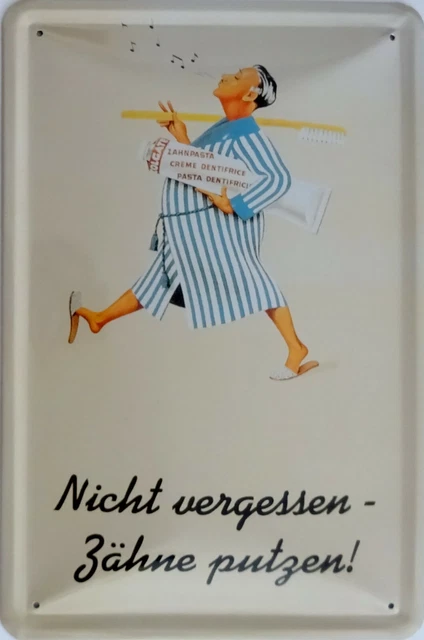 Dieses Blechschild bringt Lachen und Nutzen ins Bad! Mit dem Spruch 'Nicht vergessen Zähne putzen' erinnert es Groß und Klein an die tägliche Routine. Maße: 28 x 12 cm - groß genug, um aufzufallen. Dank Kordel und Saugnapf kannst du es ohne Bohren an Spiegeln, Fliesen oder Türen befestigen. Aus stabilem Metall gefertigt, hält es lange und sieht toll aus. Ideal als Geschenk für Familien, Freunde oder einfach zur eigenen Deko. Ein humorvolles Detail, das jedes Badezimmer aufwertet - praktisch und lustig zugleich!