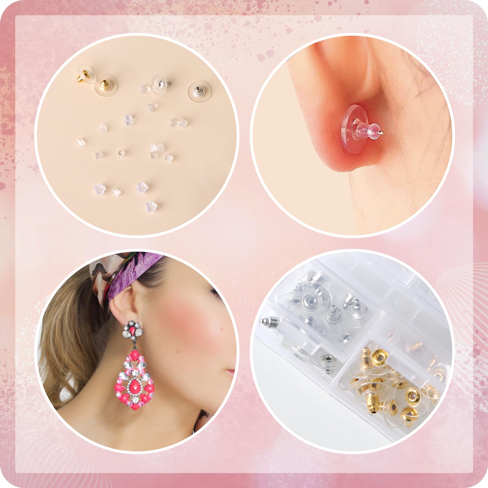 Nie wieder verlorene Ohrringe! Dieses Mega-Paket mit 500 Ohrring-Verschlüssen in 6 verschiedenen Stilen ist die Lösung für alle, die ihre Lieblingsohrringe sicher tragen wollen. Die transparenten Silikon-Stopper sind super weich, hautfreundlich und auf den Ohrringen fast unsichtbar. Perfekt organisiert in einer praktischen Aufbewahrungsbox mit separaten Fächern - da geht nichts verloren und du findest immer sofort den passenden Verschluss. Ob für normale Ohrstecker, selbstgemachte Ohrringe oder besondere Designs - diese Vielseitigkeit rockt einfach. Einfach aufstecken und deine Ohrringe sitzen bombenfest. Nie wieder bücken müssen, weil ein Ohrring runtergefallen ist!
