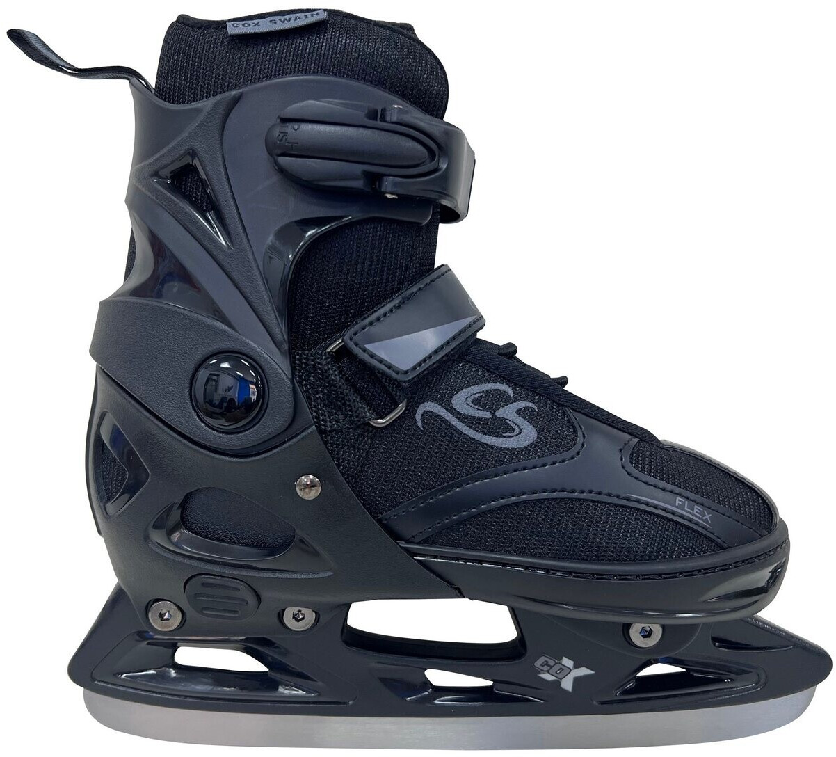 Schlittschuhe, die mitwachsen? Ja, gibt's! Die Cox Swain Polar Schlittschuhe sind über Knopfdruck in vier Größen verstellbar - ganz ohne Werkzeug. Es gibt fünf Größen von XS (29-32) bis XL (43-46), also für Kinder, Jugendliche und Erwachsene bis 100 kg. Die atmungsaktiven Softboots passen sich perfekt an den Fuß an, dank Schnürung, Powerstrap und Ratschenschnalle. Die vorgeschliffenen Edelstahlkufen sorgen für sicheres Fahren von der ersten Minute an. Das verstärkte Cuff schützt die Knöchel optimal. Und das Beste: Mit optionaler Inline-Schiene kannst du die Schuhe zu Inline-Skates umrüsten! Von einem deutschen Händler mit 20 Jahren Erfahrung - da bist du auf der sicheren Seite. Perfekt für die Eislauf-Saison oder den nächsten Winterurlaub!