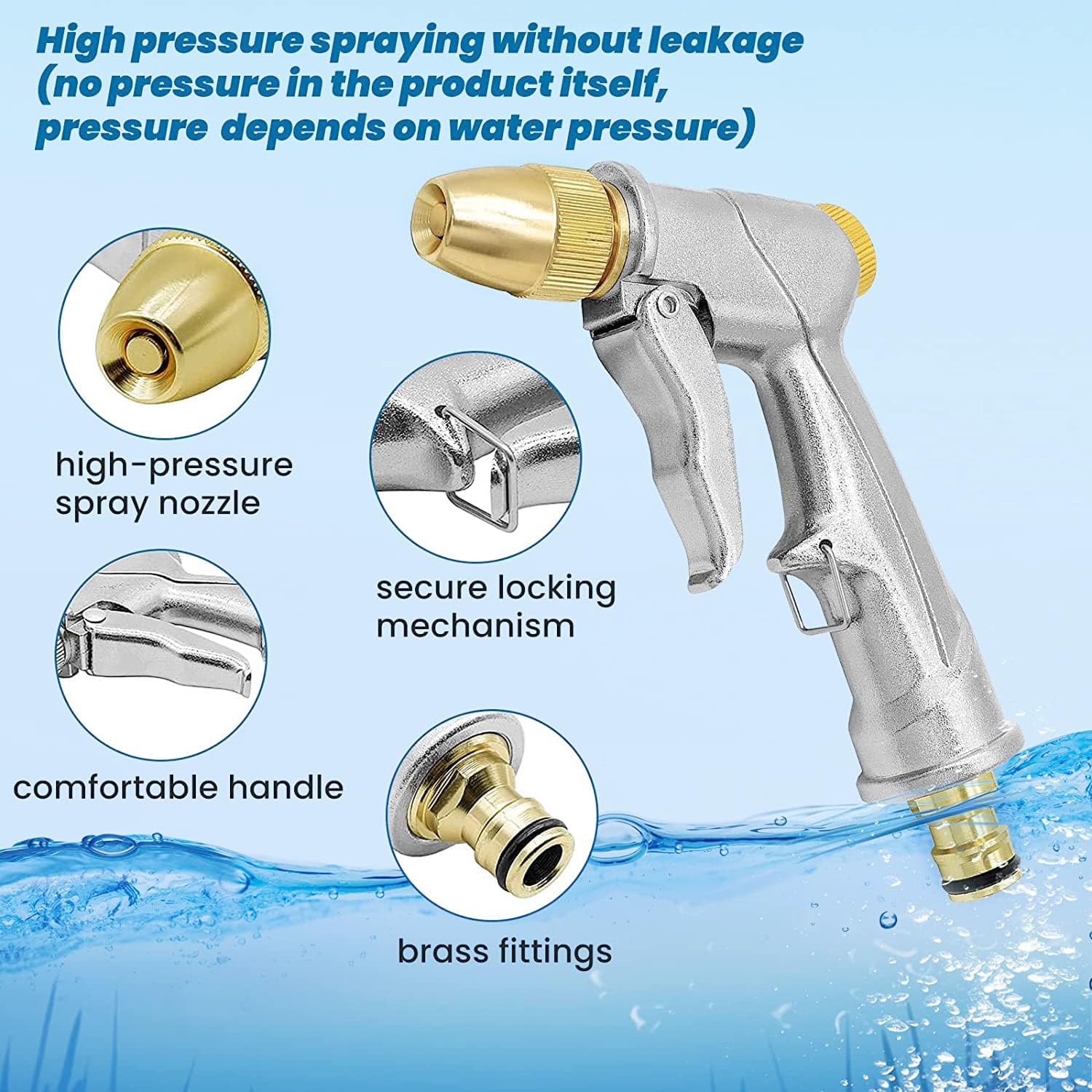 Endlich eine Gartenbrause, die nicht nach einer Saison kaputt geht! Diese Hochdruck-Spritzpistole aus robuster Zinklegierung ist ein echter Dauerbrenner. Mit kupferbeschichteten Anschlüssen rostfrei und absolut dicht - selbst bei vollem Wasserdruck.