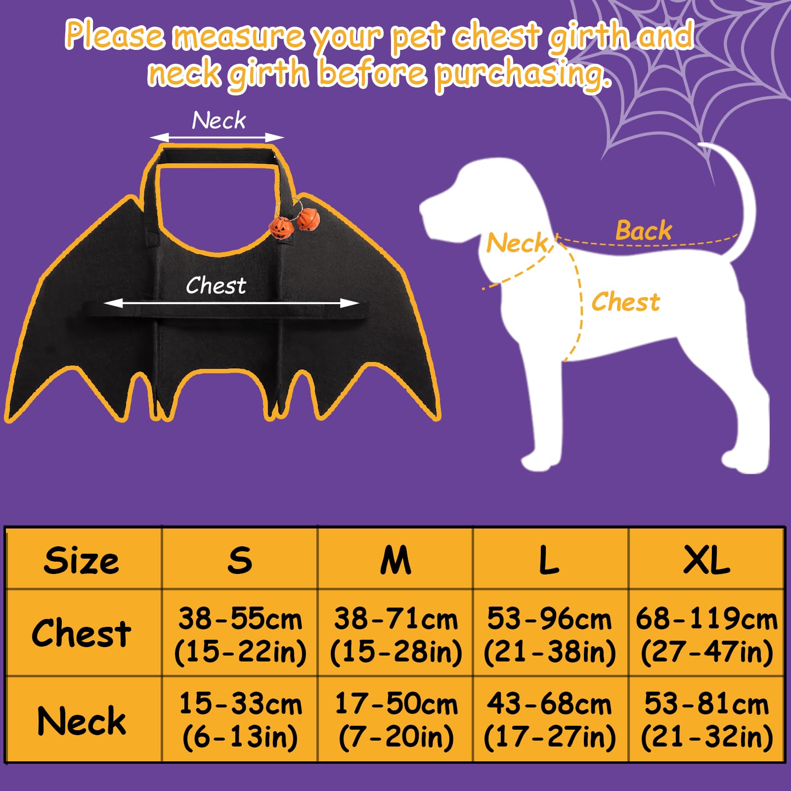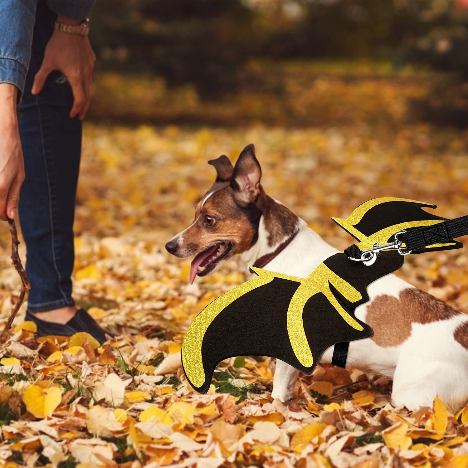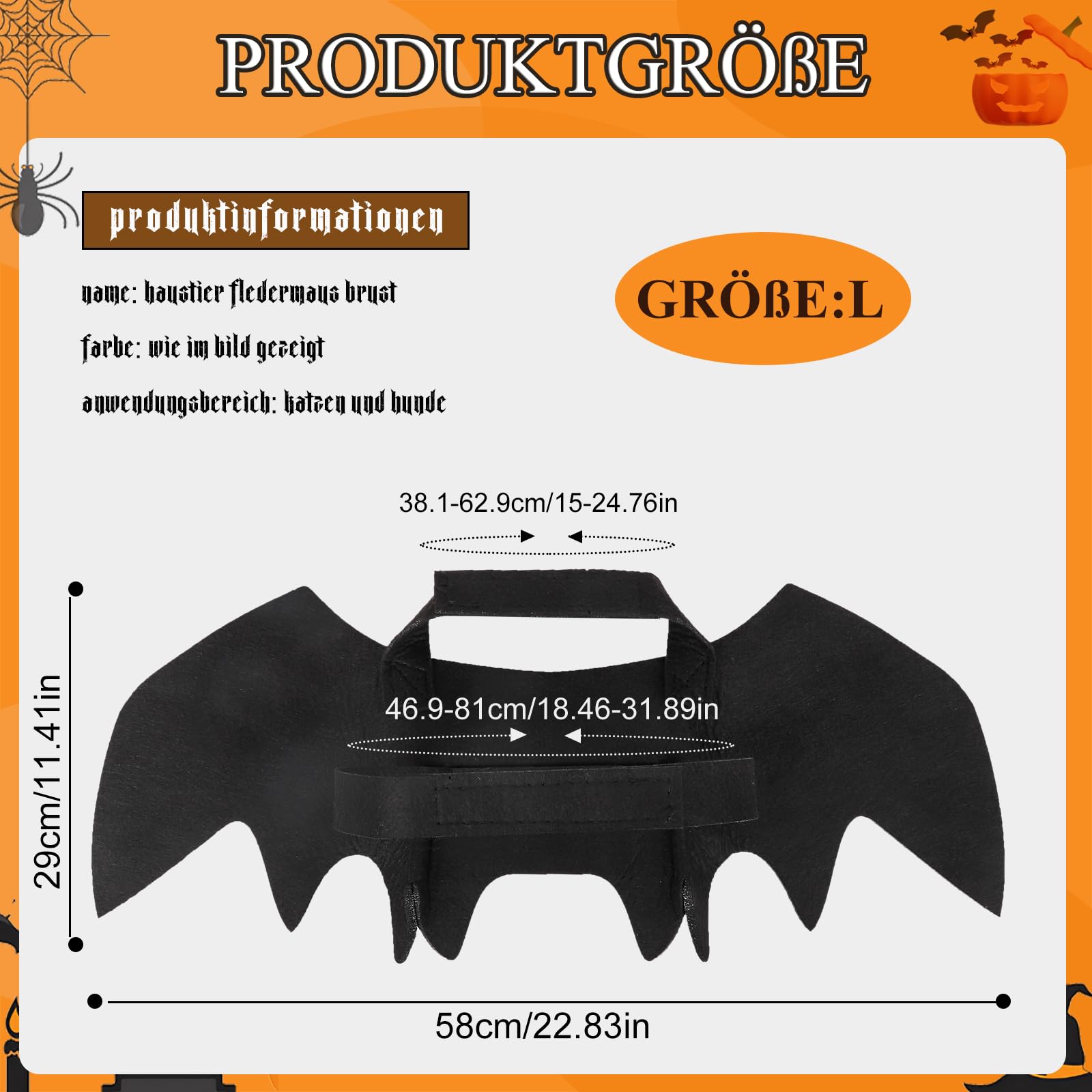 Suchst du nen lustigen Halloween-Spaß für deinen Hund? Diese Fledermaus-Flügel sind genau das Richtige! Aus 5 mm dickem Filztuch, der die Form super hält und leicht zu reinigen ist. Der weiche, leichte Stoff stört deinen Hund kaum - kein lästiges Gezuppel! Mit Klettverschluss verstellbar von 38-71 cm Brustumfang und 17-50 cm Halsumfang - passt also den meisten Hunden. Und das coole: Dran sind zwei Kürbis-Glocken, die lustig klingeln wenn dein Hund läuft. Stell dir vor, wie süß das aussieht auf ner Halloween-Party! Ob großer Dackel oder kleine Terrier - damit wird dein Hund zum Star der Feier. Einfach anlegen, zurechtzupfen und los geht's! Auch super für Fotos oder Cosplay. Dein Hund verdient es doch, mitzufeiern, oder? Damit macht Halloween doppelt Spaß - für dich und deinen Vierbeiner!