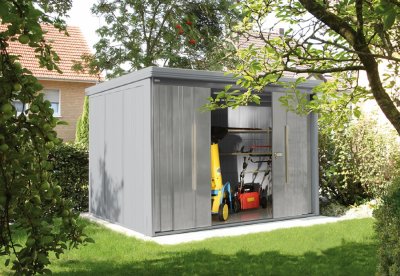 Endlich Ordnung im Garten! Dieses Gerätehaus aus verzinktem Stahl bietet auf 161x89x161cm reichlich Platz für all deine Gartengeräte. Perfekt für Rasenmäher, Werkzeuge und Poolzubehör.\\n\\nDie große Tür (99x152cm) macht das Be- und Entladen super einfach. Das schräge Dach lässt Regenwasser optimal ablaufen. Mit praktischem Kunststoff-Eckenschutz für zusätzliche Stabilität.\\n\\nVerzinkter Stahl schützt vor Rost und Witterung - hält also viele Jahre. Einfacher Zusammenbau mit beiliegender Anleitung. Inklusive stapelbarer Regale für maximale Ordnung.\\n\\nIdeal für kleine Gärten und Haushalte. Braun lackiert passt es perfekt in jede Gartengestaltung. Deine Geräte sind endlich sicher und trocken untergebracht!
