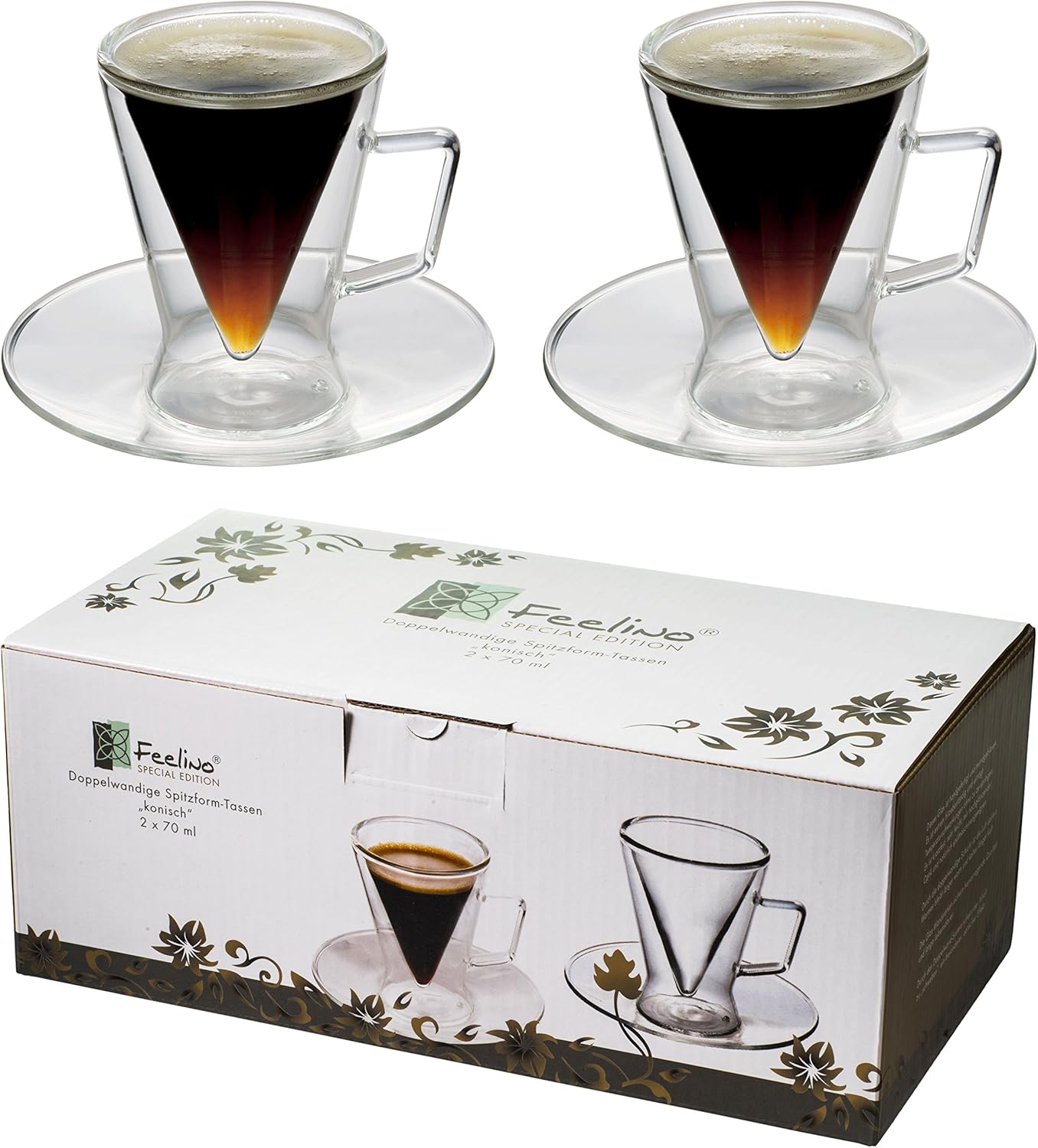 Bist du ein Kaffee-Liebhaber? Dann sind diese Vicloon Espressotassen genau dein Fall! Mit 70ml Fassungsvermögen perfekt für einen intensiven Espresso oder einen starken Tee. Die Tassen überzeugen durch ihr modernes Design und den praktischen Holzgriff, der vor Verbrennungen schützt.\\n\\nPRODUKTEIGENSCHAFTEN:\\n- Fassungsvermögen: 70ml\\n- Material: Hochwertige Keramik + Holzgriff\\n- Größe: 5,3cm Durchmesser, 4,7cm Höhe\\n- Farben: Blau, Grün, Schwarz, Weiß\\n\\nDie blauen und grünen Tassen haben eine glänzende Oberfläche, während Schwarz und Weiß matt sind. Alle sind innen glasiert für einfache Reinigung.\\n\\nIDEAL FÜR:\\n• Espresso aus Siebträger- oder Vollautomaten\\n• Cappuccino in kleiner Portion\\n• Starke Teesorten\\n• Latte Macchiato\\n\\nAchtung: Nicht mikrowellengeeignet und nicht spülmaschinenfest. Perfekt fürs Home-Office, Wohnzimmer oder als Geschenk für Kaffee-Fans! Jede Tasse wird einzeln verpackt geliefert. Mach deine Kaffeepause zu einem besonderen Erlebnis mit diesen stylischen Tassen!