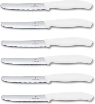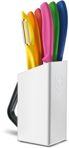 Endlich Ordnung in der Küche! Dieser Victorinox Messerblock hat alles, was du zum Kochen brauchst. 6-teilig mit 5 verschiedenen Messern und einem praktischen Sparschäler. Die Messer sind farbkodiert - jeder Griff hat seine eigene Farbe, damit du sofort das richtige Messer findest. Aus rostfreiem Stahl, superscharf und langlebig. Der Block ist schlank designt und nimmt nicht zu viel Platz auf der Arbeitsfläche ein. Maße: 26,5cm hoch, 12,5cm lang, 6,3cm breit. Perfekt für den täglichen Gebrauch - ob Gemüse schneiden, Fleisch portionieren oder Obst schälen. Victorinox Qualität aus der Schweiz - darauf kannst du dich verlassen! Der Block sieht nicht nur gut aus in weiß, er ist auch praktisch und hält deine Messer sicher verwahrt. Ein Küchenmust-have für jeden Hobbykoch!