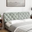 Ultimative Gemütlichkeit für dein Bett! Dieses stilvolle Kopfteil-Kissen von vidaXL verwandelt jedes Bett in eine wohnliche Wohlfühloase. Mit 180 cm Breite passt es perfekt zu Standard-Doppelbetten und verleiht deinem Schlafzimmer sofort ein elegantes Ambiente. Aus weichem, atmungsaktivem Polyester-Stoff gefertigt, fühlt es sich angenehm auf der Haut an und ist dabei extrem strapazierfähig. Die Füllung aus PP-Fasern sorgt für ultraweichen Komfort und bietet eine hervorragende Rückenlehne - perfekt für gemütliche Abende im Bett, wenn du liest, fern siehst oder einfach nur entspannst. Besonders praktisch: Das Kissen hat einen Reißverschluss für einfache Montage und Klettverschlüsse auf der Rückseite zur Befestigung von LED-Leisten für stimmungsvolle Beleuchtung. Du kannst das Kopfteil entweder mit den mitgelieferten Gurten an der Wand befestigen oder es auf ein vorhandenes Bett mit gebogenem Kopfteil legen. So hast du sofort ein bequemes Polster ohne das gesamte Kopfteil austauschen zu müssen. In dezentem Hellgrau passt es zu nahezu jeder Einrichtungsfarbe und verbreitet sofort eine gemütliche, einladende Atmosphäre. Nur das Kissen - Bettgestell und Matratze sind separat erhältlich.