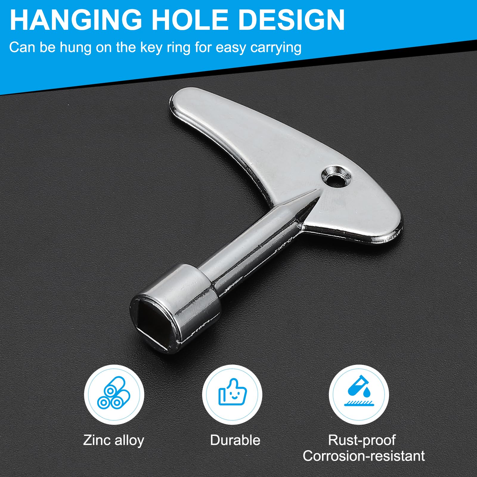Diese beiden praktischen Vierkant-Schraubenschlüssel sind echte Alleskönner! Aus robuste Zinklegierung gefertigt und mit galvanischer Oberfläche versehen, sind sie rostfrei, korrosionsbeständig und besonders langlebig. Mit den Maßen 61x57,5 mm und einem viereckigen Loch von 13,5x8 mm passen sie für viele verschiedene Anwendungen. Ob für Züge, Autos, Aufzüge, elektrische Schaltschränke oder Stromzählerkästen - diese Schlüssel drehen Ventilschrauben für Strom, Wasser und Gas zuverlässig. Das praktische Loch im Griff ermöglicht das Aufhängen am Schlüsselbund, so hast du sie immer griffbereit und verlierst sie nicht. Klein und leicht genug für jede Werkzeugtasche. Wichtig: Vor dem Kauf bitte prüfen, ob die Größe zu deinem Gerät passt. Einfach die passende Seite des Schlüssels verwenden und die Schrauben damit anziehen oder lösen - ganz easy!