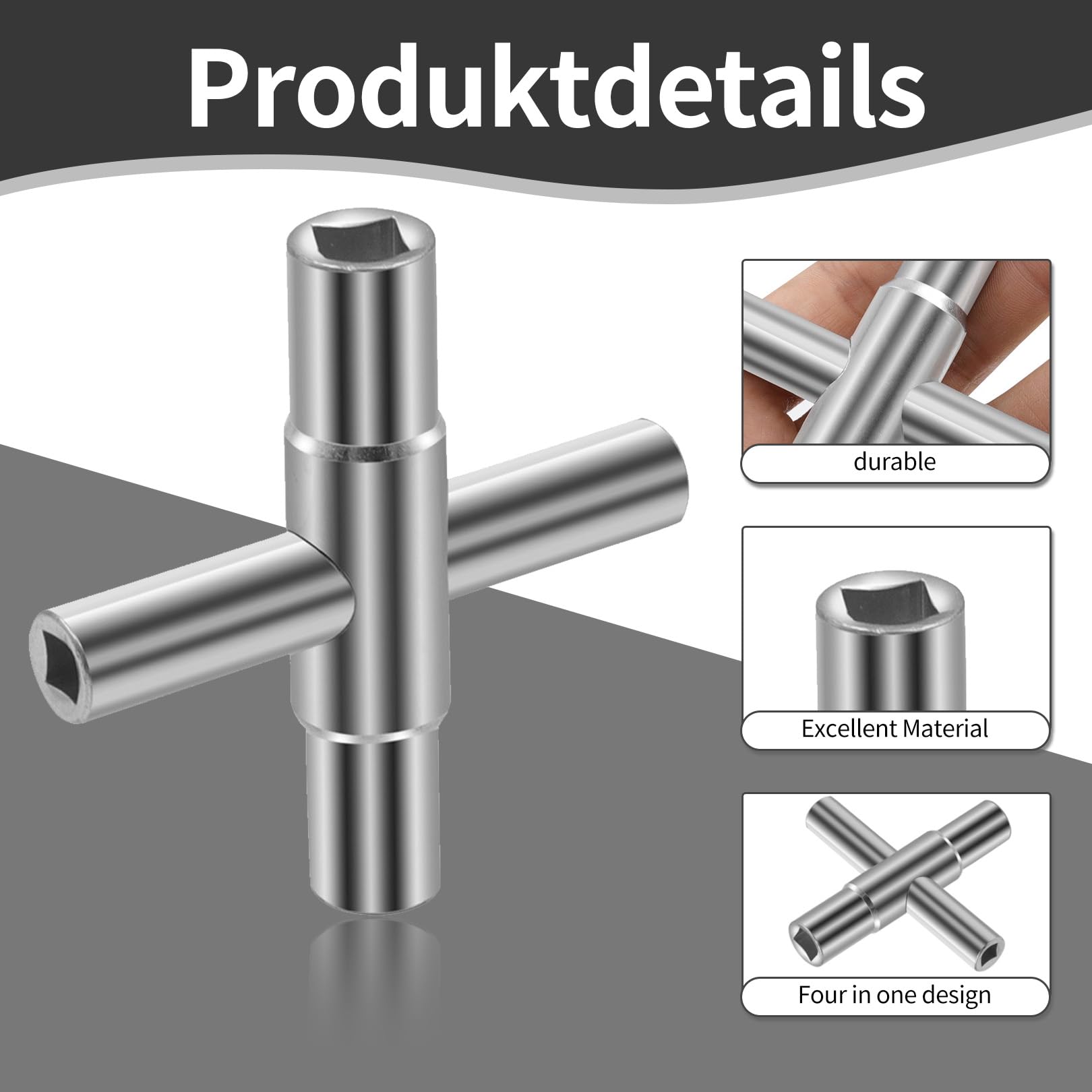 Endlich ein Werkzeug das wirklich universell ist! Dieser praktische Vierkantschlüssel hat vier verschiedene Größen (6,5mm, 7mm, 8mm und 9mm) in einem Tool - da findest du immer die passende Größe für deine Heizung oder Wasserhähne.