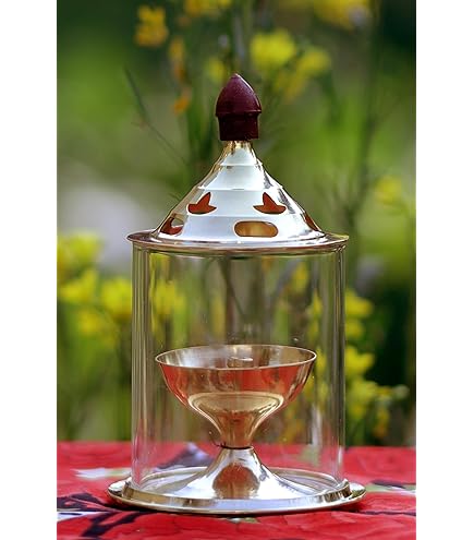 Bring spirituelle Atmosphäre in dein Zuhause! Diese wunderschöne Messing-Kubera-Vilakku-Lampe ist perfekt für religiöse Zeremonien, Feste und Familienfeiern. Aus hochwertigem Messing gefertigt, ist sie robust und langlebig. Einfach mit Baumwolldochten (Thiri) befüllen und anzünden - schon verbreitet sie ihren besonderen Charme. Die traditionelle Handwerkskunst macht diese Lampe zu einem echten Blickfang. Perfekt für tägliche Puja-Rituale oder besondere Anlässe. Ein Stück Kultur, das deine spirituelle Praxis bereichert und deinem Zuhause Wärme verleiht.