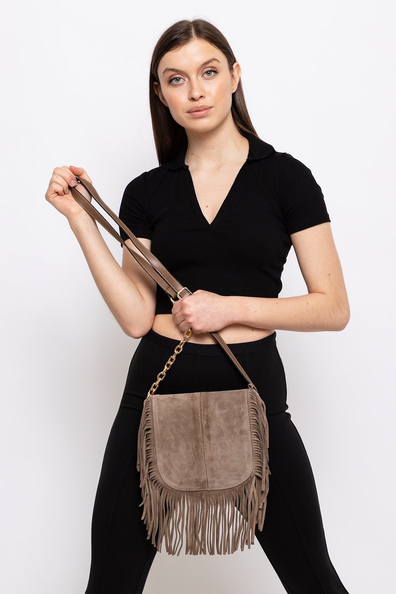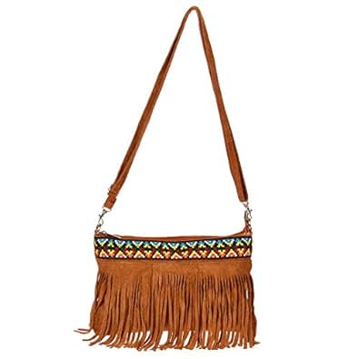 Diese coole Hobo Tasche im 70er Jahre Style ist einfach der Hit! Mit den langen Fransen und dem weichen Wildleder-Look fühlst du dich wie eine echte Cowgirl. Die Tasche hat einen verstellbaren Riemen, also kannst du sie als Umhängetasche, Schultertasche oder einfach lässig über der Schulter tragen.