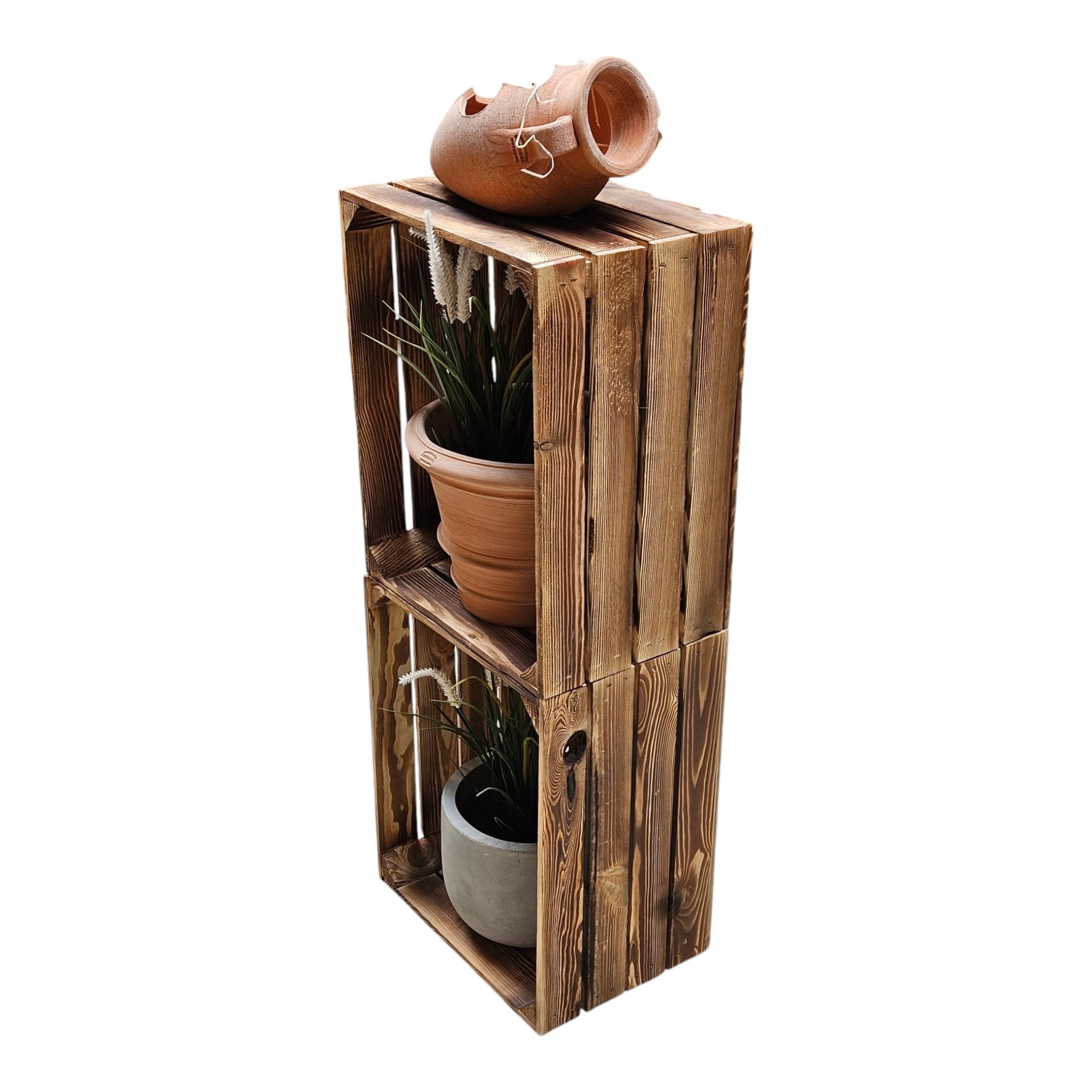 4 Vintage Holzkisten Geflammt - 50x40x30cm Obstkisten Mit Ablagefach