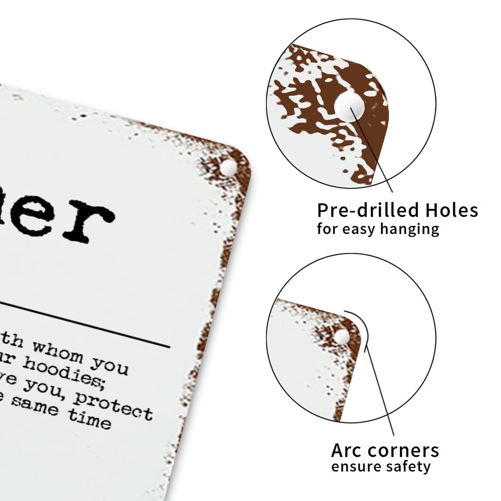 Suchst du ein cooles Geschenk für deinen Bruder oder Kumpel? Dieses Vintage-Metallschild hat den perfekten Humor! Im Wörterbuch-Stil erklärt es, was einen echten Bruder ausmacht - mit einem Augenzwinkern natürlich. Aus stabilem Aluminiumblech mit mattem Finish - sieht aus wie antik, hält aber ewig. Wasserdicht und leicht zu reinigen. Perfekt für Jugendzimmer, Werkstatt, Wohnzimmer oder die Gaming-Ecke. Einfach aufhängen - sofortiger Deko-Effekt! Die witzige Botschaft bringt jeden zum Schmunzeln. Ideal für Geburtstage, Weihnachten oder einfach als Überraschung für den besten Bruder der Welt. Mach deine Wände persönlicher und humorvoller - dieses Schild ist garantiert ein Eyecatcher!
