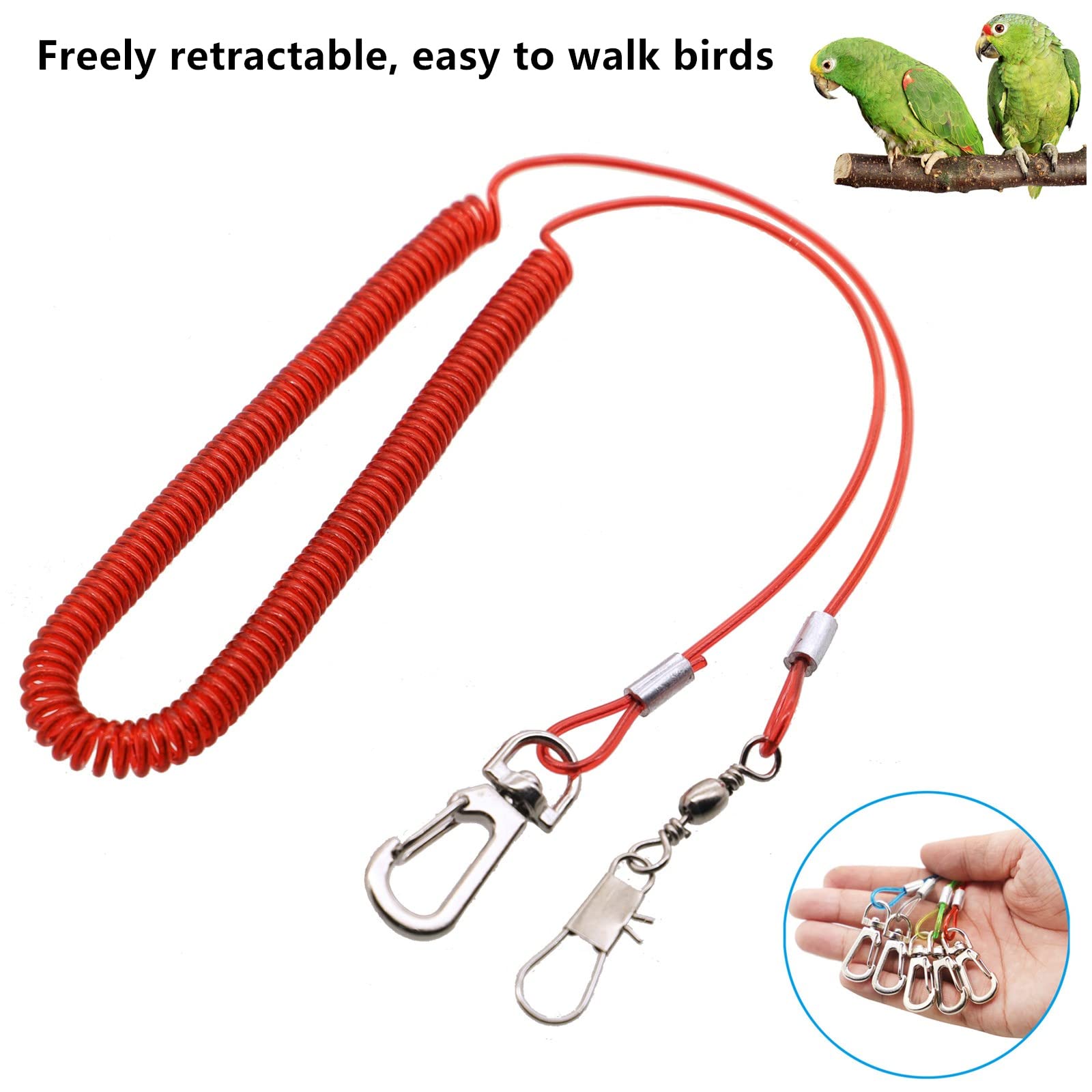 Hey Vogelfreunde! Dein Papagei will mal raus an die frische Luft, aber du hast Angst, dass er abhaut? Mit diesem cleveren Vogelleinen-Set kein Problem! Das 5 Meter lange Seil gibt deinem Vogel genug Freiheit zum Fliegen, aber hält ihn sicher in deiner Nähe. Besonders praktisch: Drei verschiedene Fußring-Größen (4,5mm, 6,5mm und 8,5mm) sind dabei - passt also für die meisten Vogelarten. Das Material ist super: Stahldraht eingebettet in umweltfreundlichem PU-Kunststoff, reißfest und dabei ganz sanft zu den Federn. Die Bedienung ist kinderleicht - einfach die passende Fußschlaufe auswählen, am Vogelbein befestigen und schon kann's losgehen. Dein Vogel kann frei fliegen und du musst dir keine Sorgen machen, dass er wegfliegt. Perfekt fürs Training oder einfach für entspannte Ausflüge ins Freie. Und das beste: Es sind gleich zwei Leinen im Set - eine in Weiß, eine in Grün. So macht Vogeltraining richtig Spaß!