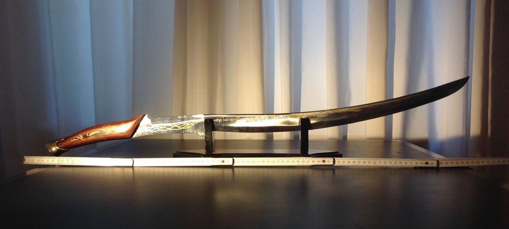 Herr der Ringe-Fans, dies ist euer Schwert! Das Hadhafang von Arwen - genau wie im Film. Mit stolzen 101 cm Länge ist dieses Schwert ein absoluter Hingucker. Die Klinge ist aus echtem Edelstahl und super scharf aussehend, aber natürlich nur für die Dekoration. Der Griff hat wunderschöne Gravuren in Goldoptik, die richtig edel aussehen. Im Lieferumfang ist alles dabei: Das Schwert selbst, eine passende Schwertscheide und sogar ein Schwertständer, damit du es perfekt präsentieren kannst. Ob an der Wand, im Regal oder auf dem Tisch - dieses Schwert macht überall was her. Die Verarbeitung ist hochwertig und fühlt sich an wie ein echtes Elbenschwert. Perfekt für Sammler, Cosplayer oder einfach alle, die Mittelerde lieben. Damit wirst du zum echten Elben - zumindest optisch! Ein Muss für jede LOTR-Sammlung und ein tolles Geschenk für alle Fantasy-Fans.