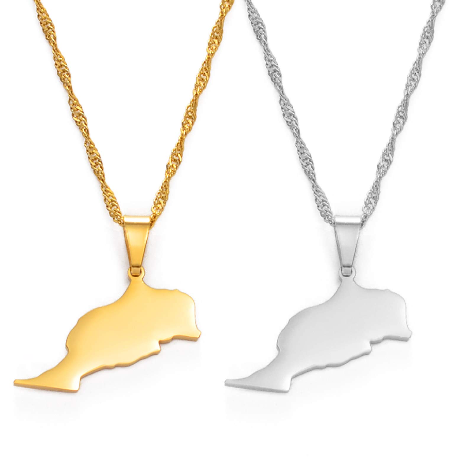 Coole Halskette mit Marokko-Karte als Anhänger! Super für alle, die eine Verbindung zu Marokko haben oder einfach Landkarten-Schmuck lieben. Die Kette ist 50-60 cm lang und damit perfekt für jeden Hals. Der Anhänger ist etwa 3,0 x 1,5 cm groß - nicht zu auffällig, aber trotzdem gut sichtbar. Macht was her bei Parties, Dates oder einfach im Alltag. Ideal als Geschenk für Freundinnen, Freunde oder Familienmitglieder. Besonders süß für Fernbeziehungen! Das schlichte Design ist total vielseitig und die Halskette rostet nicht. Ein echtes Unikat für Marokko-Fans!