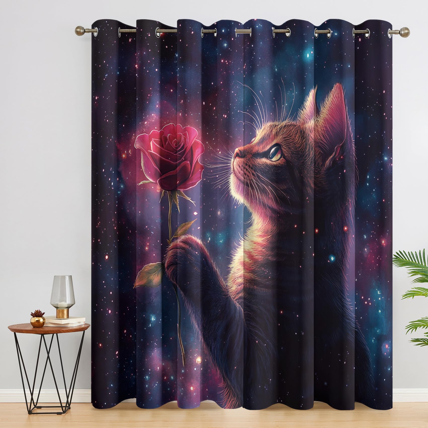 Süße Katzen im Weltall - diese Vorhänge machen jedes Zimmer gemütlich! Das 2er Set in 160x140cm pro Stück sorgt für perfekte Verdunkelung (80-85% Lichtschutz) und hält Straßenlärm fern. Aus 100% Polyester mit Metallösen für einfache Montage. Die Galaxie-Katzen-Motive sind richtig niedlich gedruckt und verblassen nicht. Im Winter halten sie die Kälte draußen, im Sommer die Hitze - spart Energie und macht das Raumklima angenehmer. Perfekt für Kinderzimmer, Wohnzimmer oder Schlafzimmer. Einfach in der Maschine waschbar - praktisch und langlebig. Mach deine Fenster zum Hingucker!