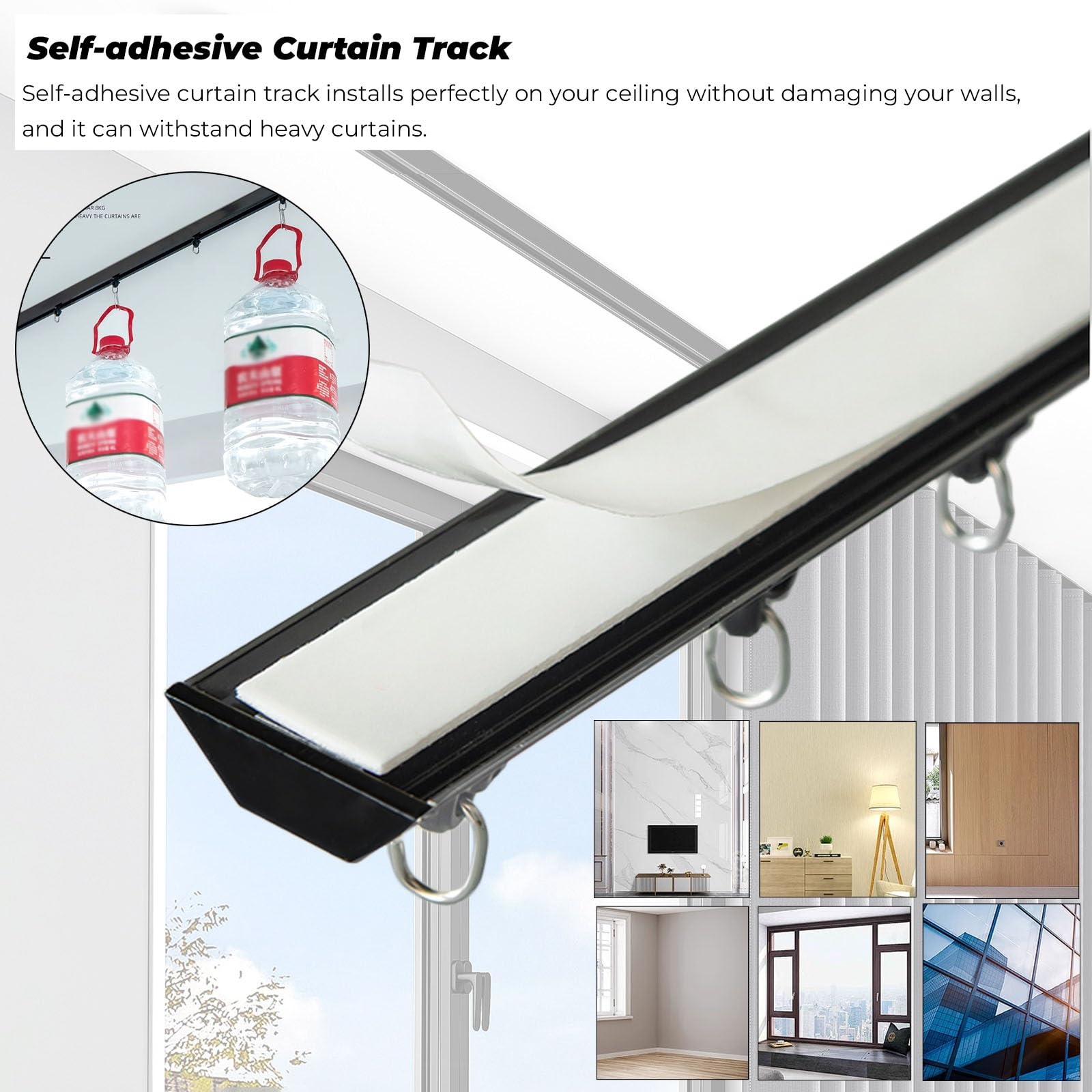 Super praktisch - diese Vorhangschiene klebst du einfach an, ohne zu bohren! Mit 160cm Länge passt sie an die meisten Fenster. Einfach die Schutzfolie vom starken Klebeband abziehen und auf eine saubere Oberfläche drücken - schon ist sie fixiert. Aus robustem Aluminium gefertigt, hält sie auch schwerere Vorhänge problemlos aus. Nur 1cm flach und in schwarz - fast unsichtbar und passt sich jedem Raum an. Die geräuschlosen Rollen gleiten super leise und die Verbindungsstücke machen die Montage zum Kinderspiel. Perfekt nicht nur für Fenster, sondern auch als Raumteiler, für Duschvorhänge oder im Kleiderschrank. Im Lieferumfang: 4 Schienenteile, Verbindungsstücke, Haken und das starke Klebeband. Einfach auspacken, zusammenstecken, ankleben - und schon hast du eine professionelle Vorhanglösung ohne Bohrlärm und Dreck!