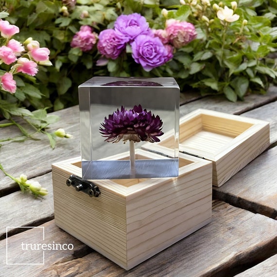 Bring etwas Natur auf deinen Schreibtisch! Diese bezaubernden Briefbeschwerer aus klarem Harz enthalten echte gepresste Blumen - jedes Stück ein Unikat! Im Set bekommst du 10 verschiedene Motive in lila Farbtönen. Jeder Würfel misst etwa 1,6 cm und ist handgefertigt. Das Harz ist kristallklar und lässt die filigranen Blüten perfekt zur Geltung kommen. Super als Briefbeschwerer, aber auch einfach als hübsche Deko für Regale, Sideboards oder als Tischdekoration bei Feiern. Die Oberfläche ist glatt und fühlt sich angenehm an. Da jedes Stück von Hand gefertigt wird, ist keines wie das andere - das macht die Serie so besonders. Ein tolles Geschenk für Blumenliebhaber, Büroangestellte oder einfach für dich selbst. Bringt sofort frühlingshafte Stimmung in jeden Raum!