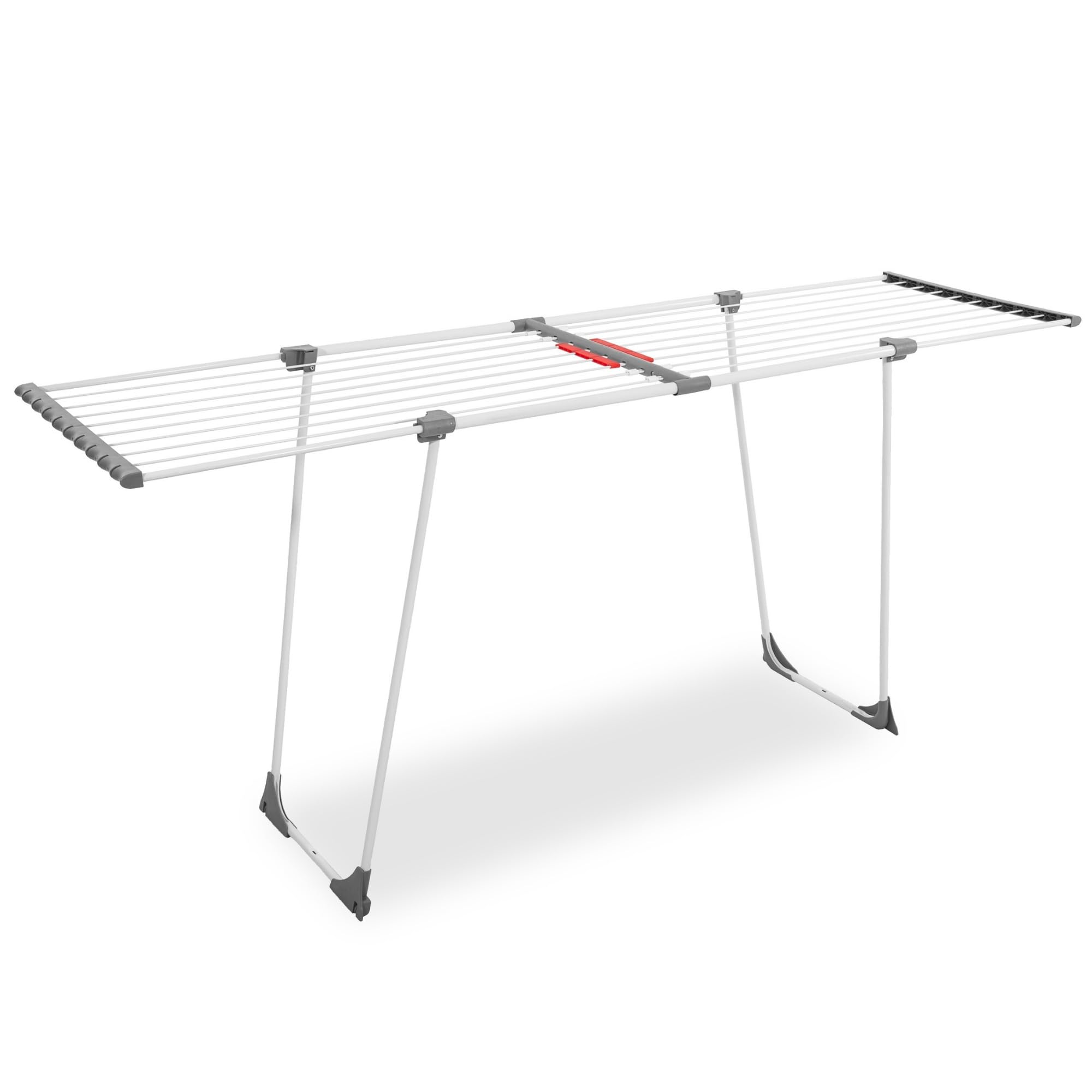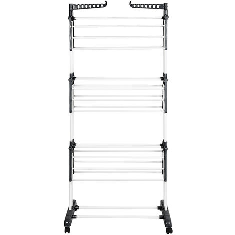 Platzprobleme beim Wäschetrocknen? Dieses vertikale Wunder hilft! Mit 3 Ebenen und insgesamt 24 Stangen bietet der Trockner stolze 17 m² Trockenfläche - genug für bis zu 15 kg Wäsche auf einmal! Die eingebauten Rollen machen ihn auch voll beladen leicht beweglich. Aus hochwertigem Edelstahl und Kunststoff gefertigt, extrem stabil und langlebig. Nach Gebrauch einfach zusammenklappen und platzsparend verstauen - perfekt für kleine Wohnungen oder Haushalte mit begrenztem Platz. Zusätzlich 2 Haken für Kleiderbügel, ideal für Hemden oder Jacken. Ob in der Wohnung, im Keller oder auf dem Balkon - dieser Trockner ist dein neuer bester Freund! Einfach aufstellen, Wäsche aufhängen und schon trocknet alles gleichmäßig und schnell.