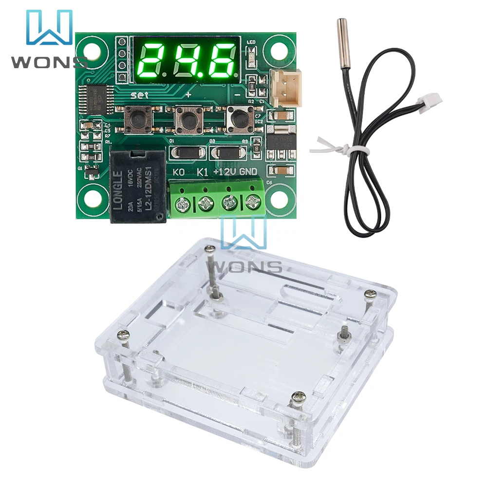 Dieses kleine W1209 Board ist ein echter Temperatur-Alleskönner! Misst und regelt Temperaturen von -50°C bis +110°C - das ist ja mal ne Bandbreite! Super genau mit 0,1°C Schritten. Perfekt für Aquarien, Terrarien, Kühlschränke oder Klimaanlagen. Der Sensor ist wasserdicht - kann also auch unter Wasser verwendet werden. Läuft mit 12V, verbraucht kaum Strom. Nur 48x40mm klein, passt überall hin. Einfach zu bedienen mit ON/OFF Schaltung. Für Heimwerker, Technik-Fans oder alle, die was temperaturmäßig regeln müssen. Einfach anschließen und deine Temperatur im Griff haben!