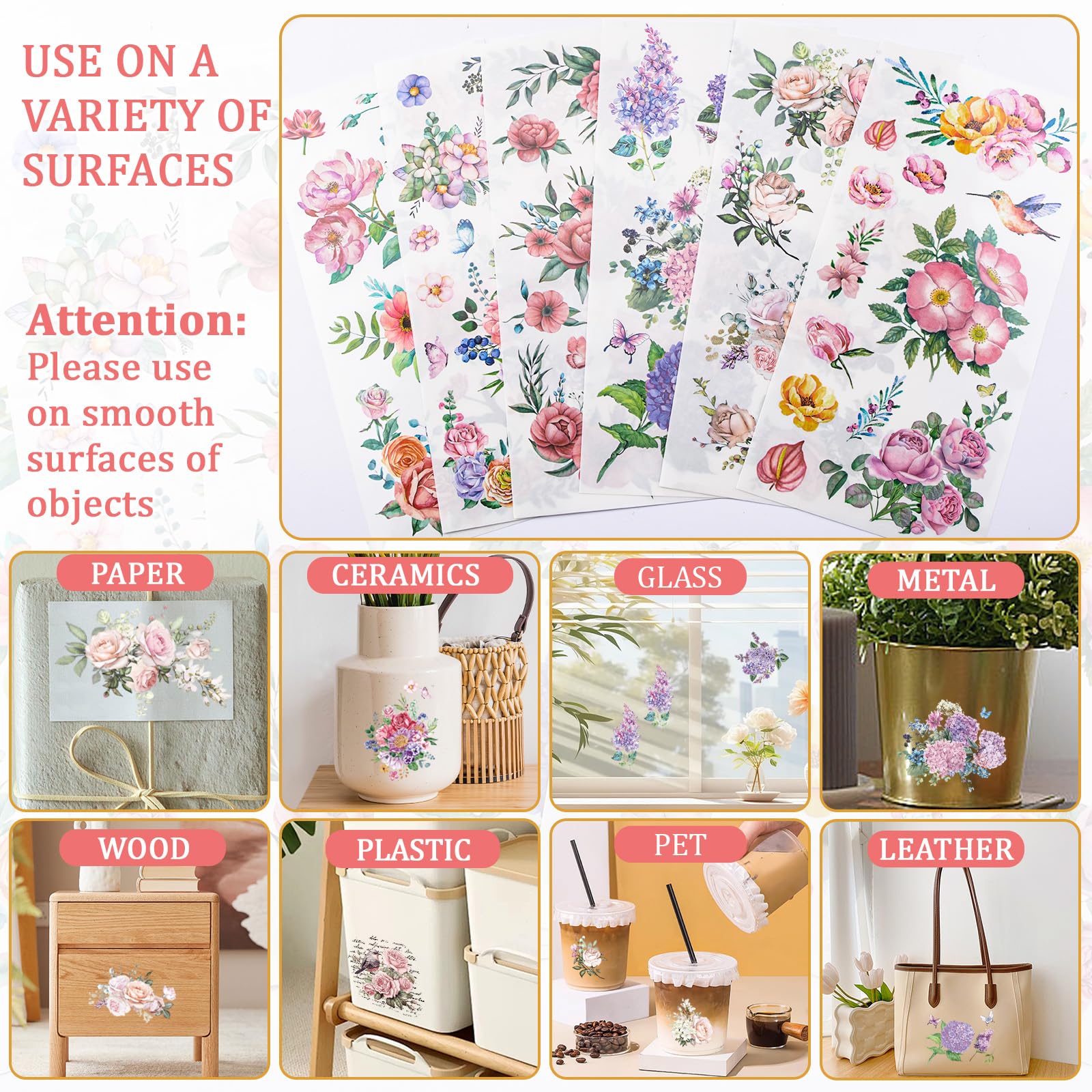 Kreativität pur mit diesen wunderschönen Blumen-Transferaufklebern! Im Set sind 12 Blatt mit verschiedenen floralen Motiven, je ca. 15x15 cm groß. Einfach auf glatte Oberflächen aufreiben - schon haften die Motive auf Möbeln, Glas, Keramik oder in deinem Scrapbook. Wasserdicht und farbecht, also auch für den Outdoor-Einsatz geeignet. Perfekt für DIY-Projekte, Geschenkgestaltung oder zur Verschönerung von Einrichtungsgegenständen. Lass deiner Fantasie freien Lauf und gestalte einzigartige Kunstwerke!
