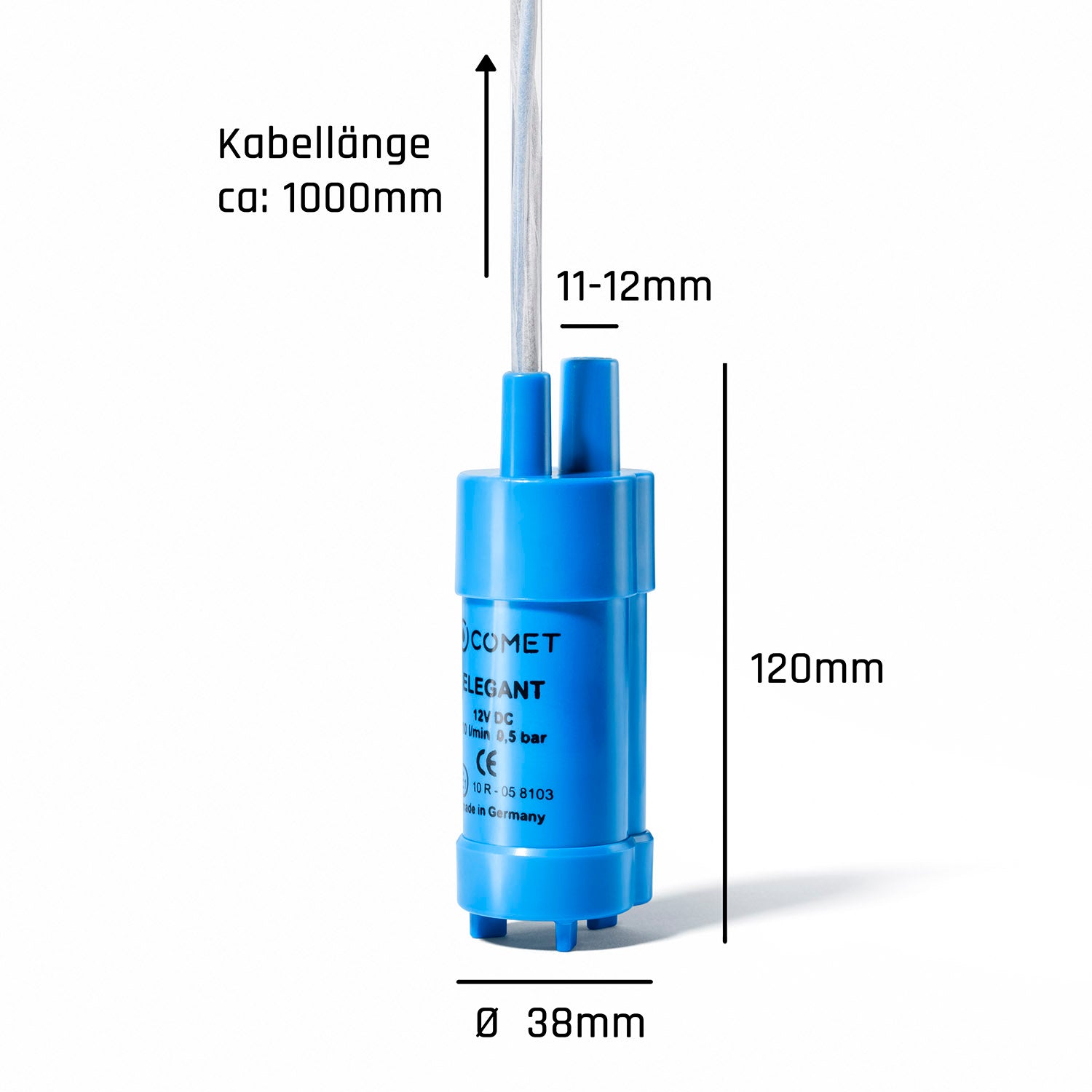 Praktische Tauchpumpe für unterwegs! Diese 12V Wasserpumpe ist perfekt für Wohnmobile, Camper und Caravans. Mit 17W Leistung und max. 5m Förderhöhe (0,5 bar) packt sie alles was du brauchst. Das 1,5m lange Kabel mit 5,5x2,1mm Stecker passt an Auto- oder Batteriestrom. Der Wasserauslass hat 12mm Außendurchmesser - ideal für Standard-Schläuche. Achtung: Nicht für Temperaturen über 40°C geeignet und nicht länger als 24h durchgehend betreiben. Perfekt für Toiletten C200, C200CW und ähnliche Modelle. Einfach ins Wasser tauchen, anschließen und schon fließt das Wasser! Unverzichtbar für jeden Camping-Ausflug.