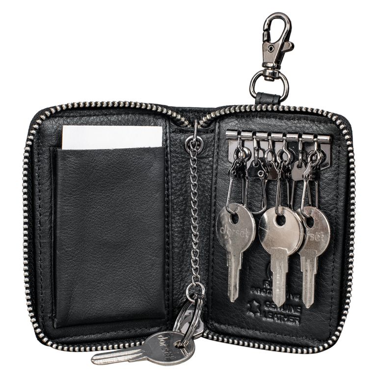 WEFHEF Schlüsseltasche Lederoptik - Schwarz Mit Reißverschluss Für Damen & Herren