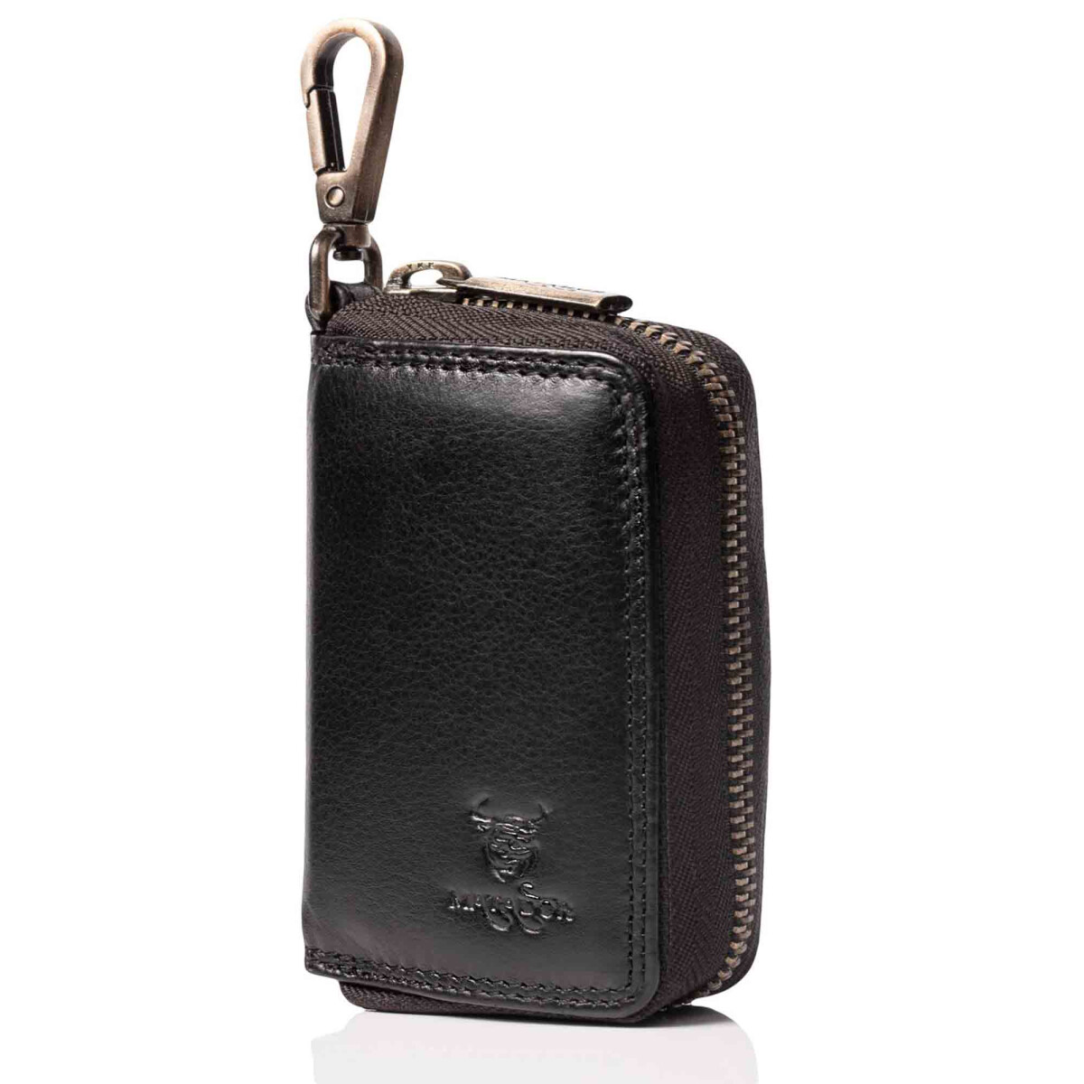 • WEFHEF Schlüsseltasche Lederoptik - Schwarz Mit Reißverschluss Für Damen & Herren