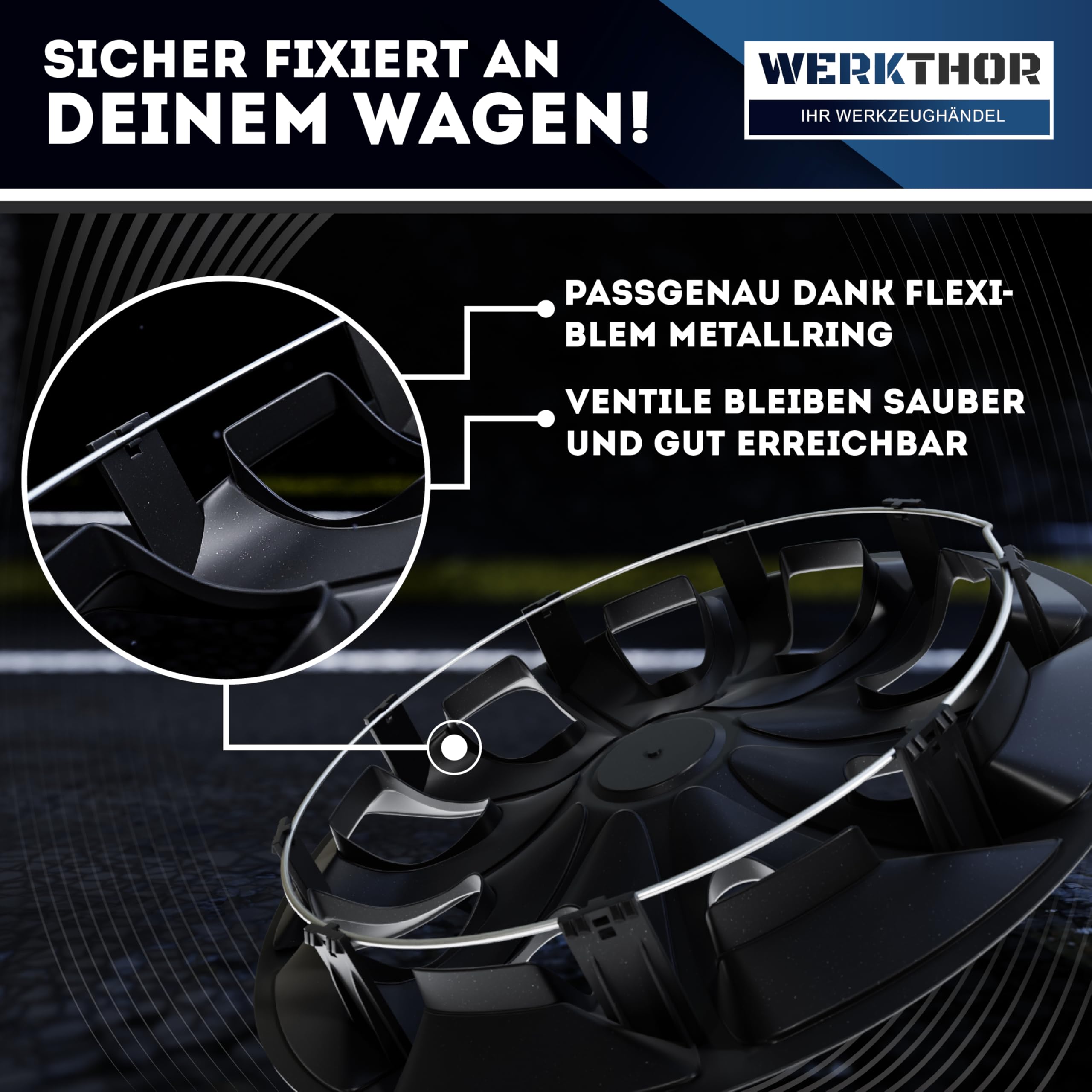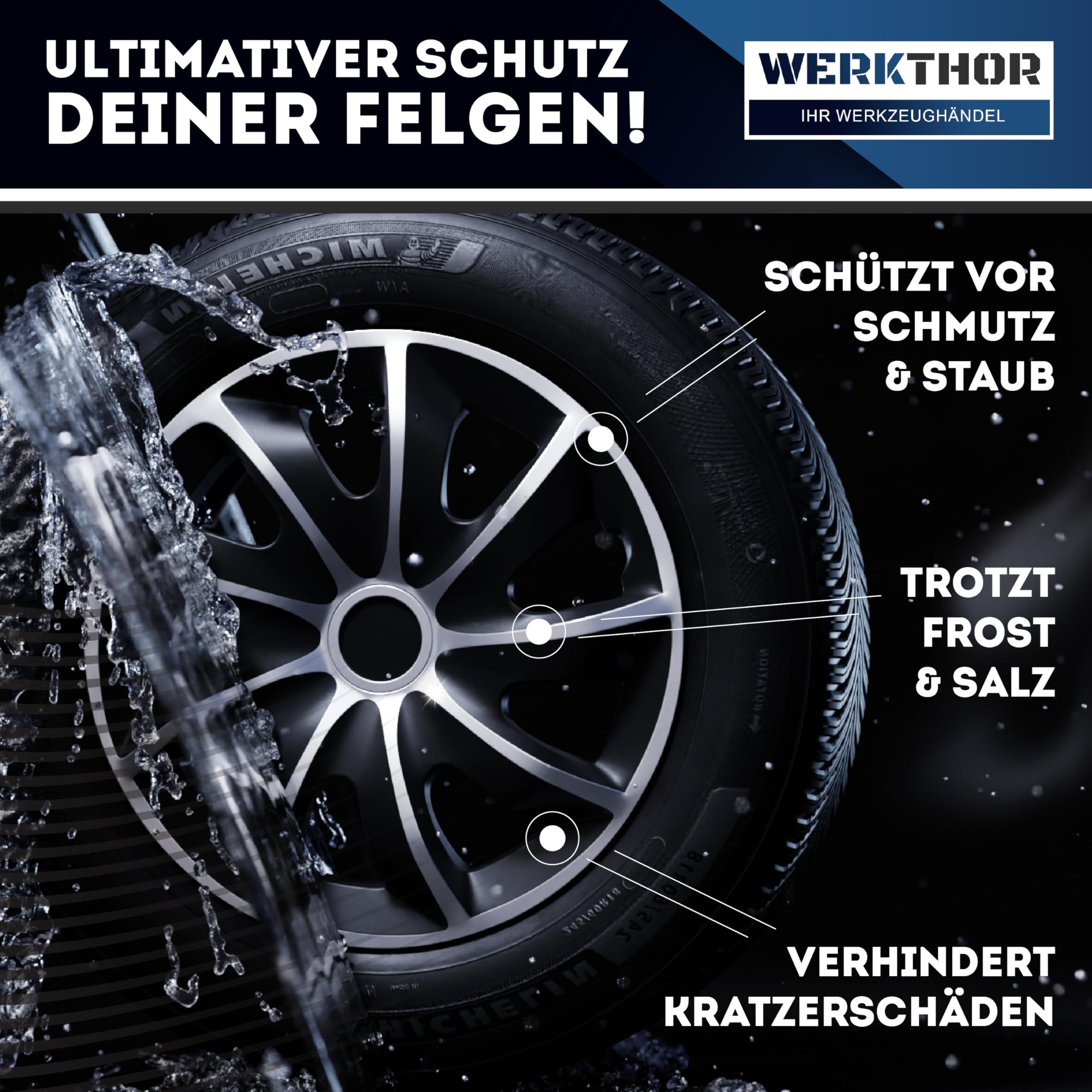 Mach aus langweiligen Stahlfelgen echte Hingucker! Dieses 4er-Set von WERKTHOR gibt deinem Auto sofort einen sportlich-eleganten Look. Die Radkappen sind aus super robustem Kunststoff - halten Steinschlag, Schmutz und selbst Bordsteinkontakt stand! Einfach montieren dank cleverem Stecksystem, komplett werkzeuglos. Der Spannring lässt sich bei Bedarf mit ner Zange anpassen für perfekten Sitz. Erhältlich in verschiedenen Größen von 13-16 Zoll, passen auf die meisten gängigen Stahlfelgen. Viel günstiger als teure Alufelgen, aber sehen fast genauso gut aus! Für Sommer- und Winterreifen geeignet. Und falls doch mal was nicht passt: 60 Tage Geld-zurück-Garantie geben dir totale Sicherheit. Dein Auto wird dich dankbar anlächeln!