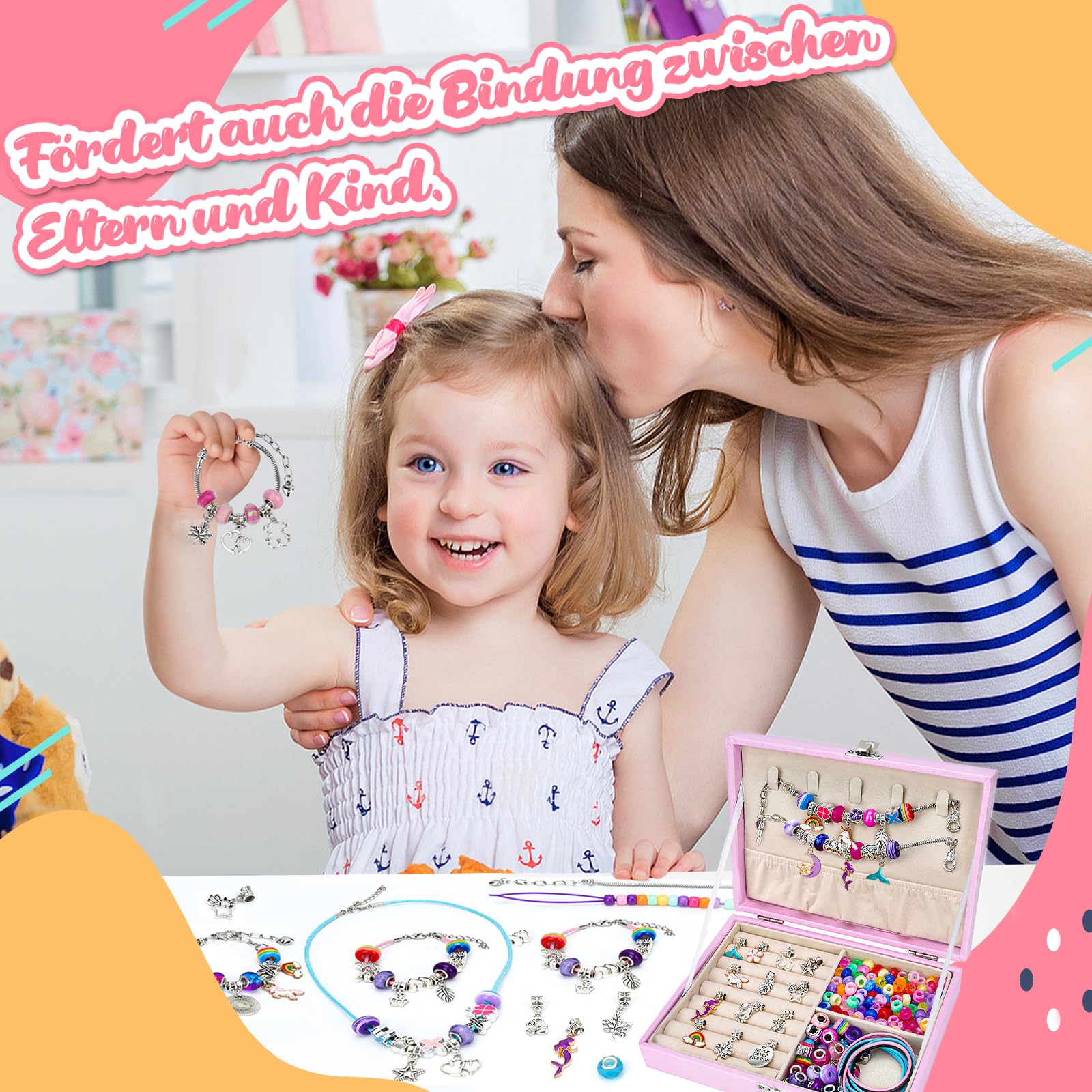 Hey! Dieses total süße Schmuck-Bastelset von WEVOL ist perfekt für kreative Mädchen zwischen 5 und 13 Jahren. Stell dir vor: Deine Tochter oder Nichte kann ihre eigenen, einzigartigen Armbänder und Halsketten gestalten - mit über 70 Teilen! Im Set findest du 24 niedliche Anhänger (Einhörner, Delfine, Schmetterlinge und mehr), 20 Legierungsperlen, 20 Kristallperlen, 3 verstellbare Armbänder und 3 Nylonhalsketten. Alles kommt in einer praktischen, samtgefütterten Aufbewahrungsbox aus PU-Leder, die super robust ist und den Schmuck vor Kratzern schützt. Das Beste? Die Armbänder lassen sich von 16cm auf 21cm verlängern, die Halsketten von 45cm auf 50cm - wächst also super mit! Perfekt für Geburtstage, Weihnachten oder einfach als Überraschung. Übrigens: Die Perlen sind aus hochwertiger Legierung und Kunststoff, aber bitte beachten - nicht für Kinder unter 3 Jahren geeignet wegen verschluckbarer Kleinteile. So macht Kreativität Spaß und fördert nebenbei noch die Feinmotorik und den eigenen Stil!