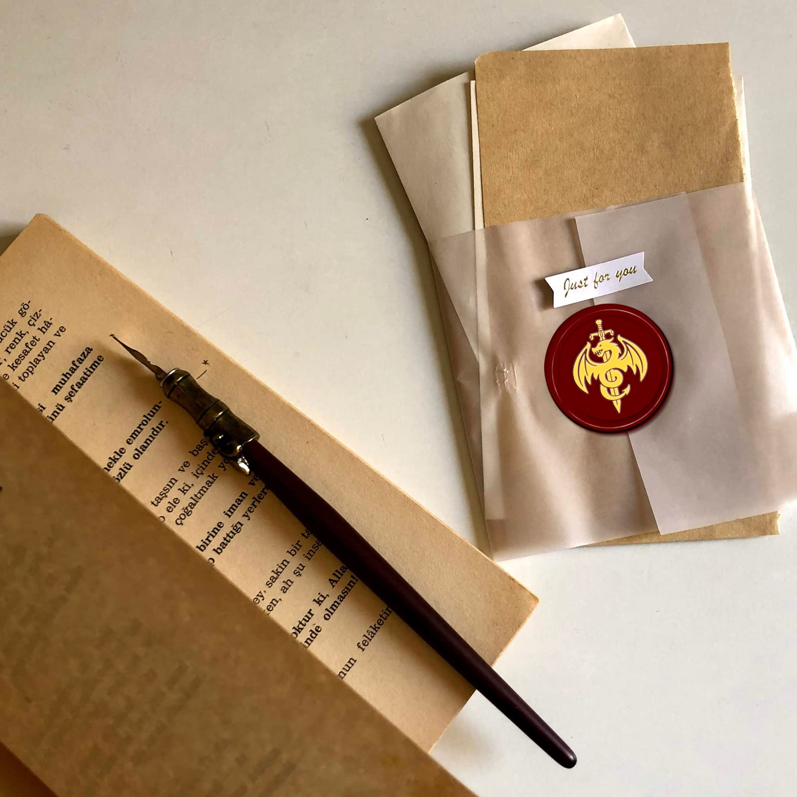 Total hübscher Wachs-Siegelstempel im Vintage-Look! Mit Drachen- und Mond-Design, 30mm Durchmesser. Aus Messing, abnehmbarer Kopf mit Holzgriff - einfach zusammenstecken und los geht's. Perfekt für besondere Anlässe wie Hochzeiten, Weihnachten, Einladungen oder um Briefe und Geschenke zu verzieren. Einfach Wachs erhitzen, auf den Umschlag gießen, Stempel draufdrücken und warten - fertig ist das persönliche Siegel! Super für DIY-Projekte, Karten, Einladungen oder um Dokumente zu versiegeln. Macht jedes Schreiben oder Geschenk etwas ganz Besonderes. Einfach Handhabung, aber wow-Effekt garantiert! Ohne Wachs - das musst du separat besorgen. Einfach ein wunderschönes Accessoire für alle die gerne basteln oder besondere Geschenke machen!