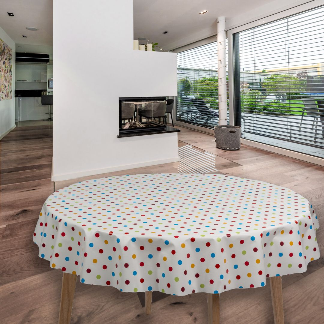 Diese charmante Wachstuch-Tischdecke von CKM bringt Style und Praktikabilität an deinen Esstisch! Mit einem Durchmesser von 140cm passt sie perfekt auf die meisten runden Tische. Das süße Punkte-Design in Kombination mit der wasserabweisenden Oberfläche macht sie zum absoluten Allrounder für den täglichen Gebrauch. Oben 100% PVC, unten 100% synthetisches Vlies - so ist sie nicht nur schmutzabweisend, sondern auch rutschsicher. Perfekt für Familien mit Kindern, gemütliche Kaffeerunden oder auch für den Einsatz im Freien. Einfach abwischen und schon sieht sie wieder wie neu aus! Zertifiziert nach Öko-Tex Standard 100 - also schadstoffgeprüft und unbedenklich für den täglichen Gebrauch. Die Lieferung erfolgt gefaltet mit Schnittkante, sodass du sie sofort verwenden kannst. Ob für die Küche, den Essbereich oder den Garten - diese Tischdecke sieht nicht nur gut aus, sondern ist auch super praktisch. Ein echter Hingucker, der das Leben leichter macht!