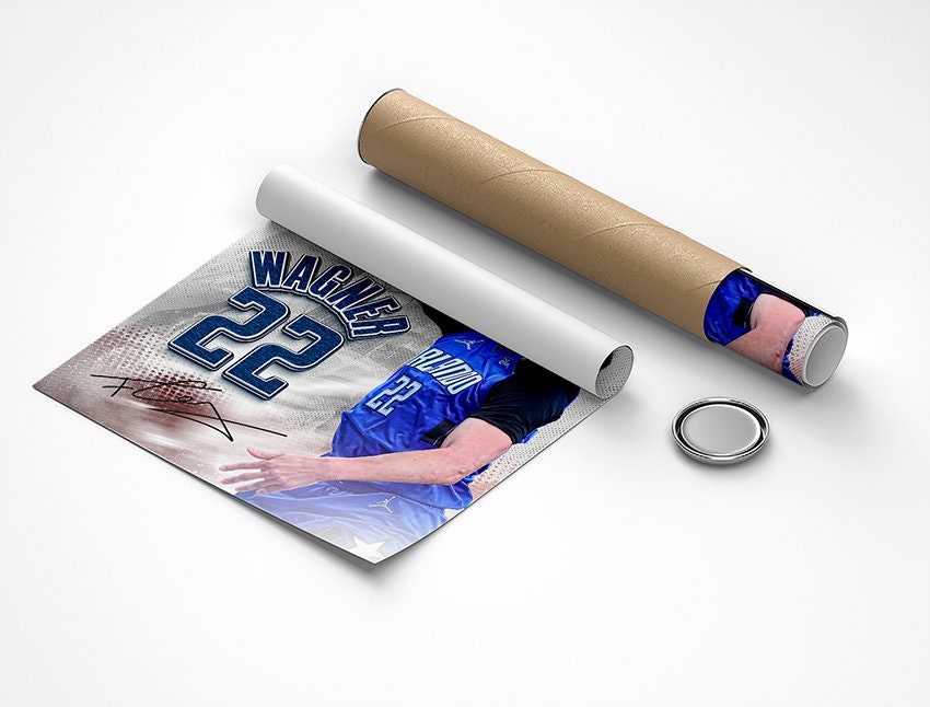 Spektakuläres Franz Wagner Basketball Poster auf hochwertiger Leinwand! Mit 50x75cm Maßen ein echter Hingucker für jede Wand. Professionell gedruckt mit scharfer, hochauflösender Bildqualität. Jedes Poster wird von Hand gefertigt und liebevoll inspiziert. Die ästhetische Wandkunst passt perfekt in jedes Zimmer - ob Wohnzimmer, Büro oder Jugendzimmer. Ideal für Basketball-Fans und Kunstliebhaber. Modernes Design das Leichtigkeit und Schönheit verbreitet. Anders als Papierposter ist die Leinwand langlebiger und qualitativ hochwertiger. Einfach aufhängen und dein Zuhause verschönern! Perfektes Geschenk für Sport-Fans.