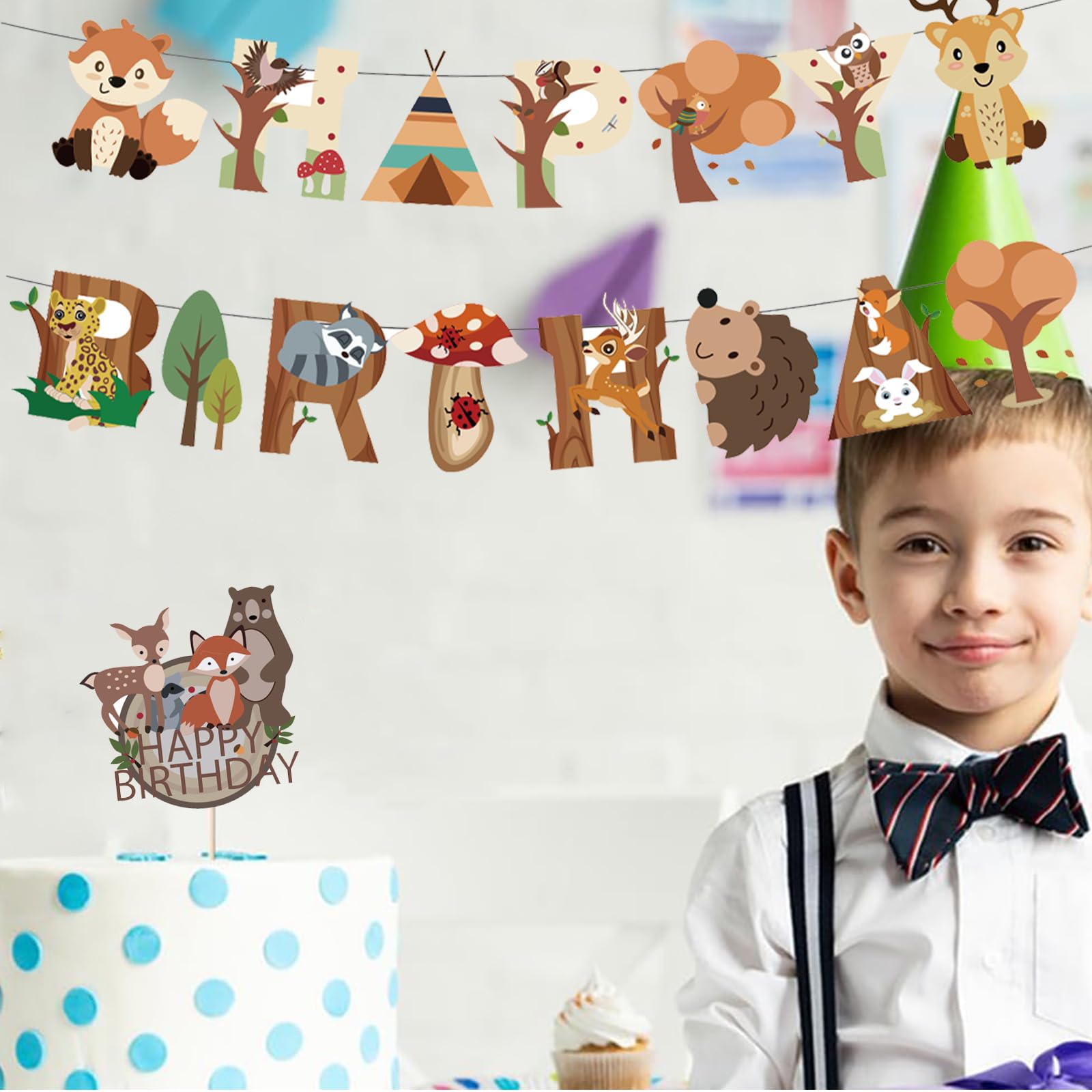 Planst du einen Kindergeburtstag mit Waldtier-Motto? Dieses niedliche Deko-Set verwandelt deine Party im Handumdrehen in ein magisches Waldabenteuer! Im Set sind ein Happy Birthday Banner und 14 süße Tierfiguren für die Kuchendekoration enthalten.