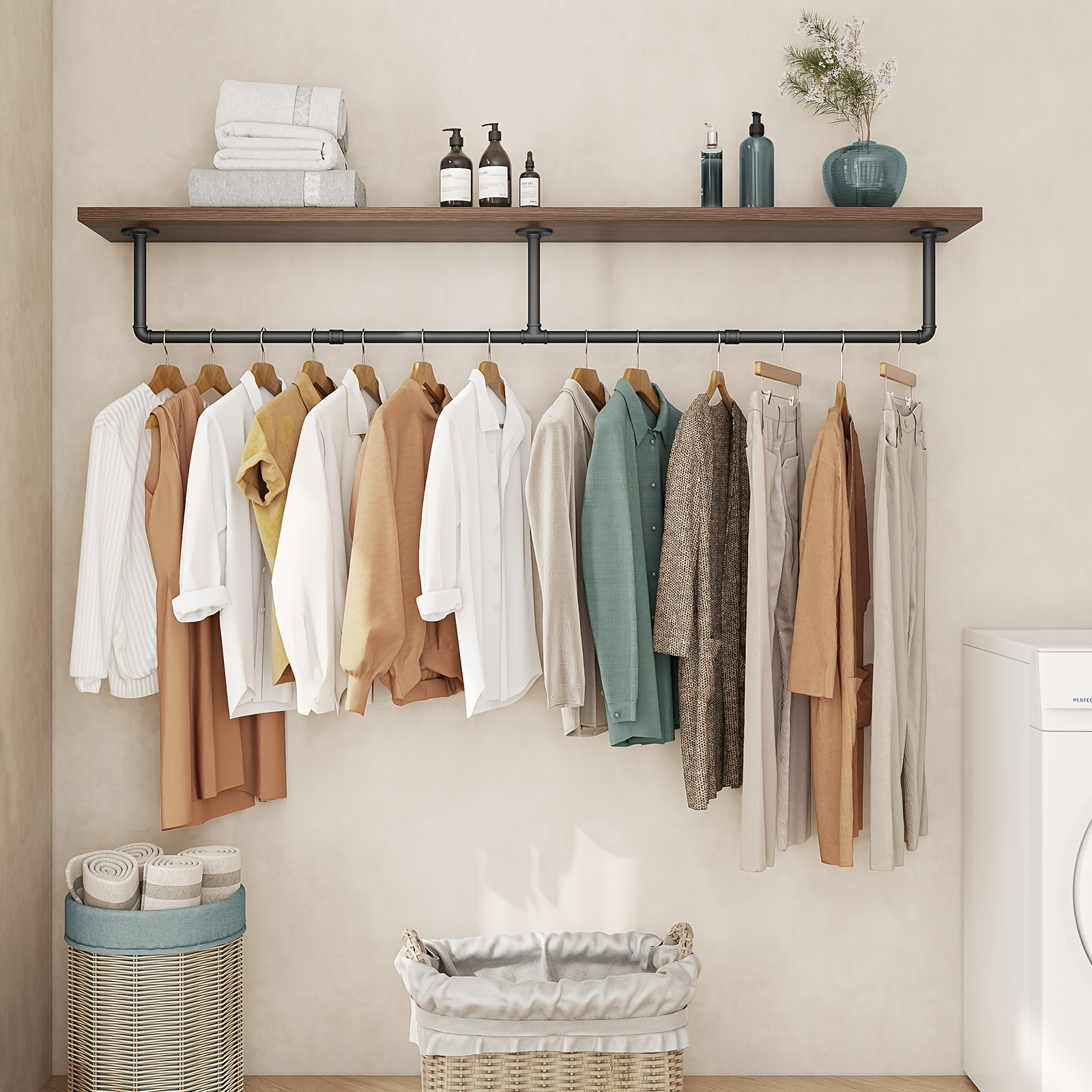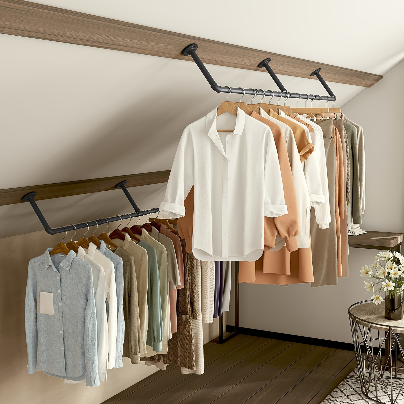 Wow, dieser Eck-Kleiderständer ist einfach genial für kleine Wohnungen! Der Industrie-Look mit den coolen Rohren passt super in jeden Raum - ob WG, Altbau oder Loft. Einfach an die Wand schrauben (geht total easy mit nem Kreuzschlitz-Schraubendreher) und schon hast du jede Menge Platz für Mäntel, Jacken, Anzüge und Kleider. Gibts in verschiedenen Größen von 30x30cm bis 60x60cm und in Schwarz, Gold oder Weiß. Aus robustem Metall - hält ewig und trägt auch schwere Wintermäntel ohne Probleme. Perfekt für den Flur, Schlafzimmer oder sogar den Abstellraum. Kein lästiges Falten mehr und die Kleidung bleibt schön in Form. Du kannst da aber nicht nur Klamotten aufhängen - auch super für Handtücher, Regenschirme oder als Ablage für Taschen. Mach aus jeder langweiligen Ecke einen praktischen Stauraum! Einfach montieren und sich über den gewonnenen Platz freuen.