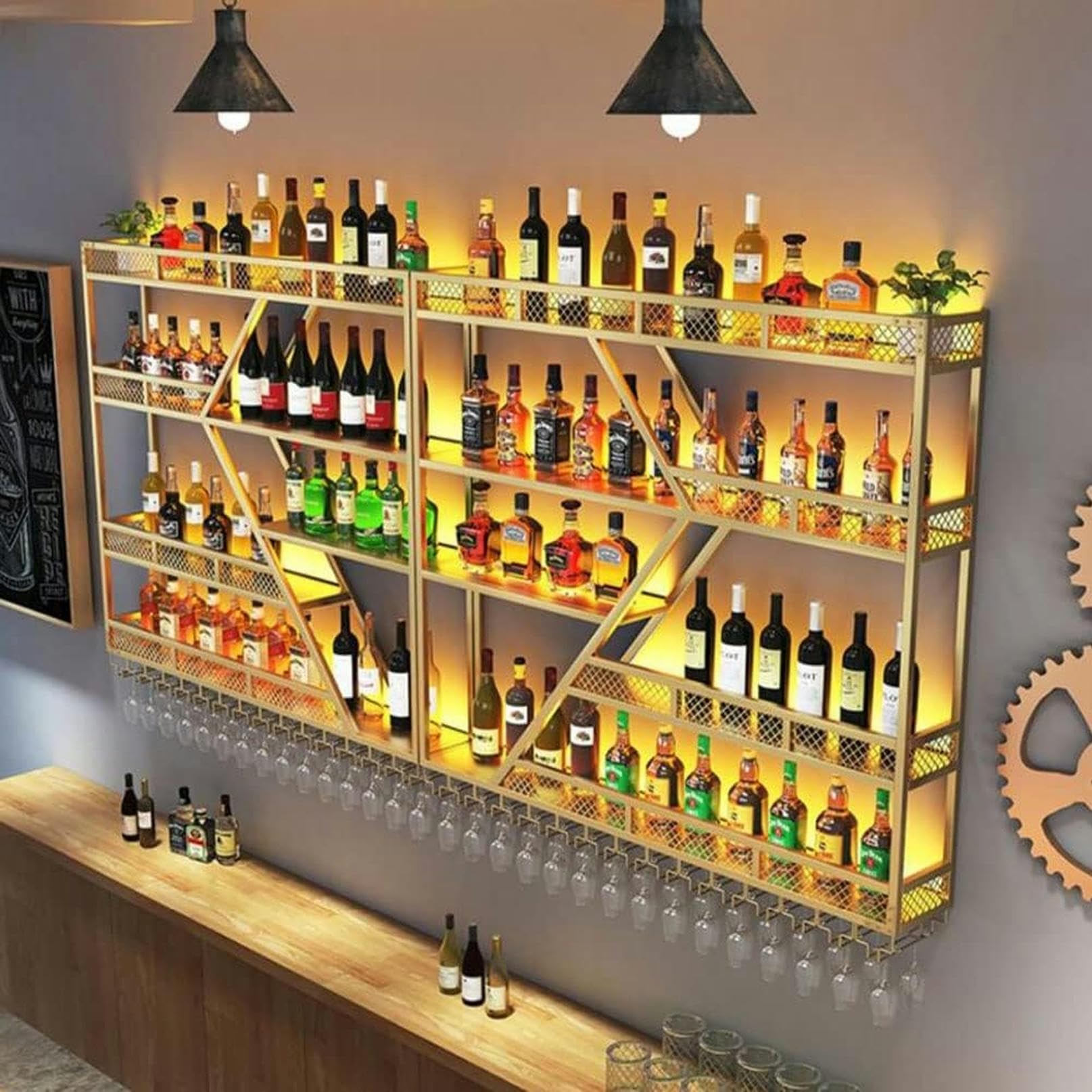 Weinregal Wand Mit LED-Beleuchtung 90x90cm - Eisen+MDF Mit Glasregal