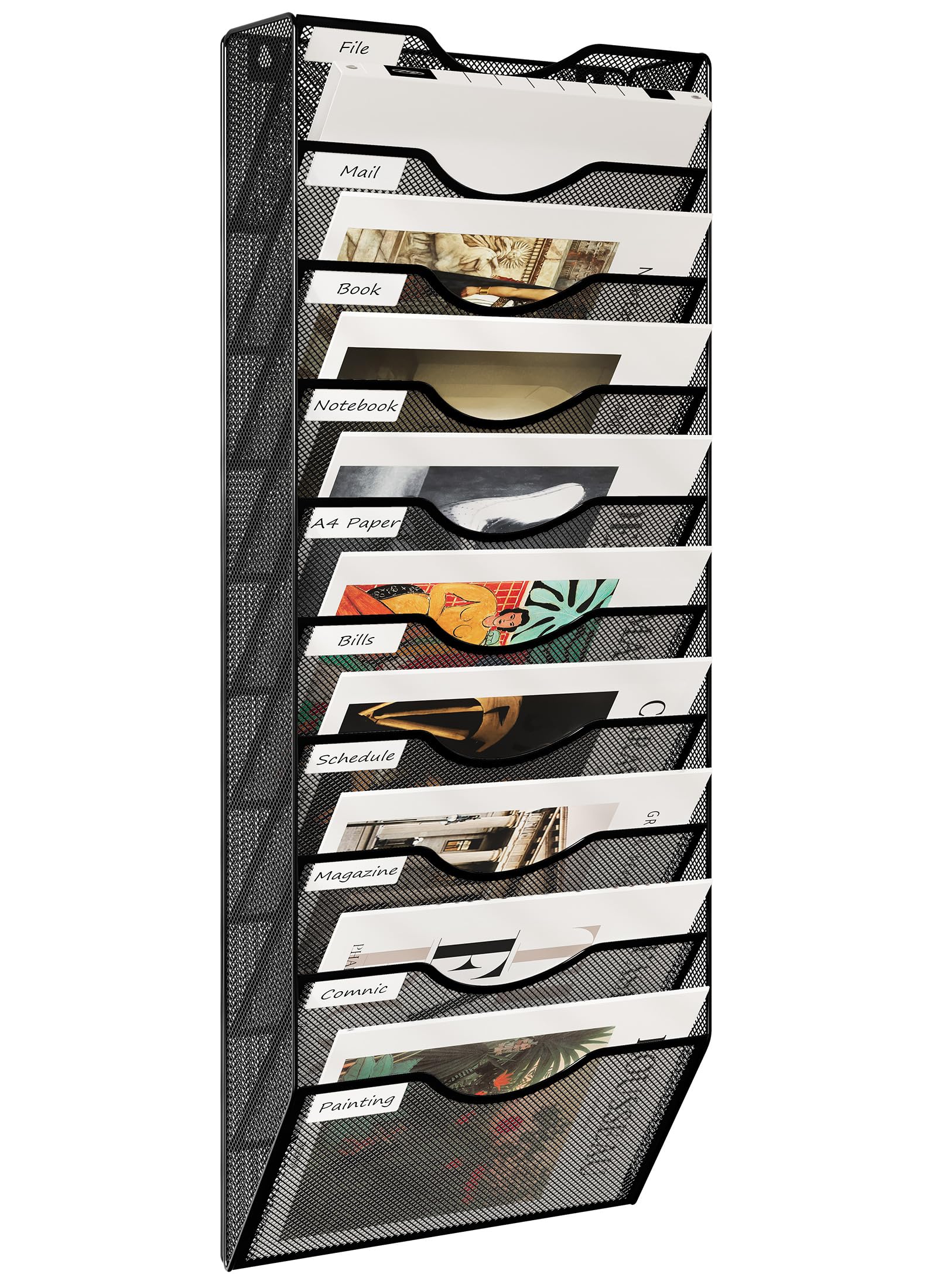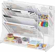Endlich Ordnung an der Wand! Dieser praktische Organizer mit 5 Fächern hält deine Dokumente, Zeitschriften und A4-Unterlagen perfekt sortiert. Aus robustem Stahl mit Netzdesign, hält auch schwere Ordner problemlos aus. Mit 3 integrierten Stiftehaltern - immer griffbereit! Kann sowohl an der Wand montiert als auch auf den Schreibtisch gestellt werden. Die polierten Kanten sind super glatt, keine scharfen Ecken. Maße: 41x15,5x33cm - platzsparend aber geräumig. Perfekt fürs Büro, Homeoffice, Kinderzimmer oder Schule. Hält Comics, Schulbücher, Rechnungen oder Briefe organisiert. Einfache Montage in wenigen Minuten. In cleanem Weiß - passt zu jedem Einrichtungsstil. Sag Chaos den Kampf an!